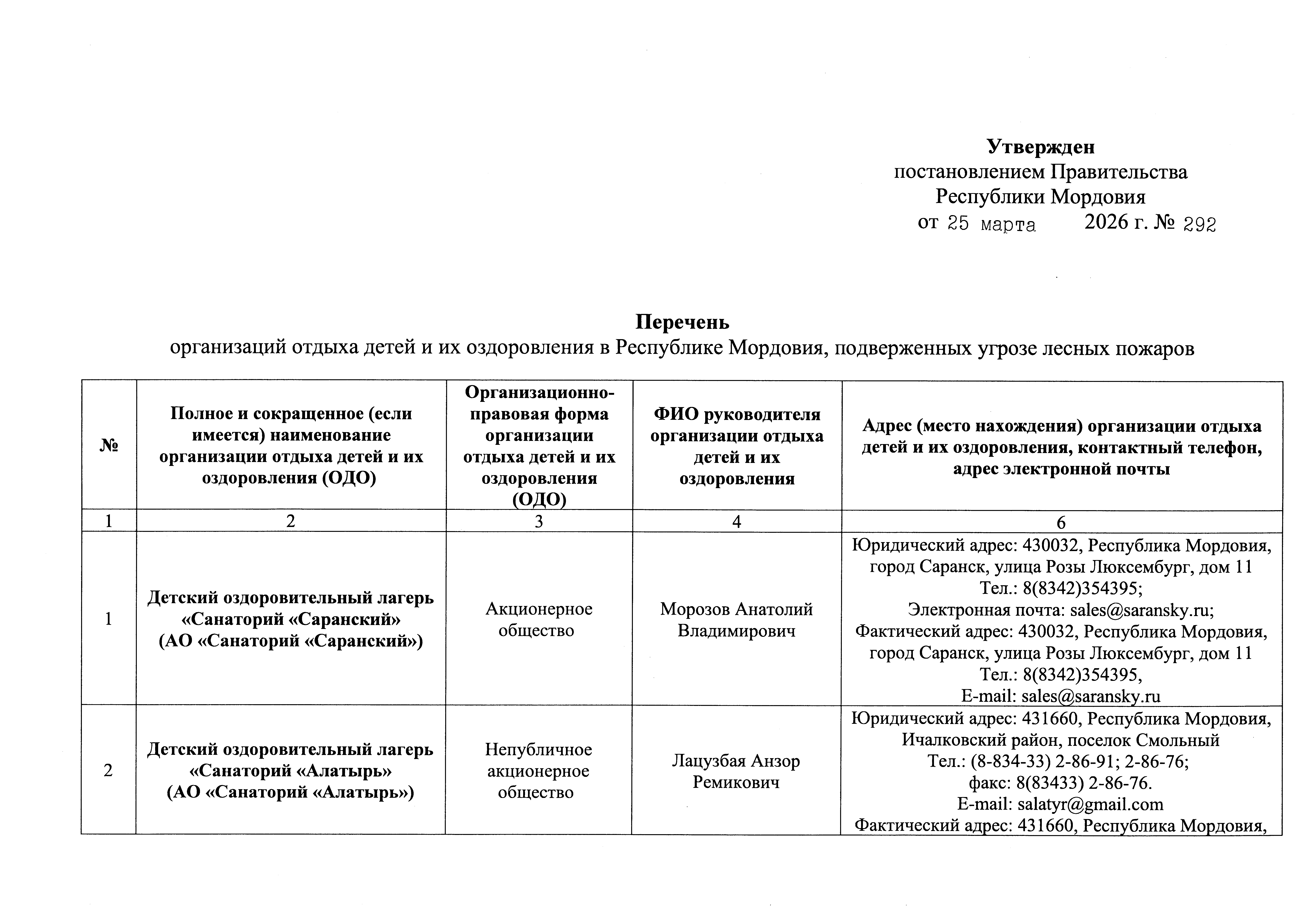 Постановление Правительства Республики Мордовия от 25.03.2026 № 292