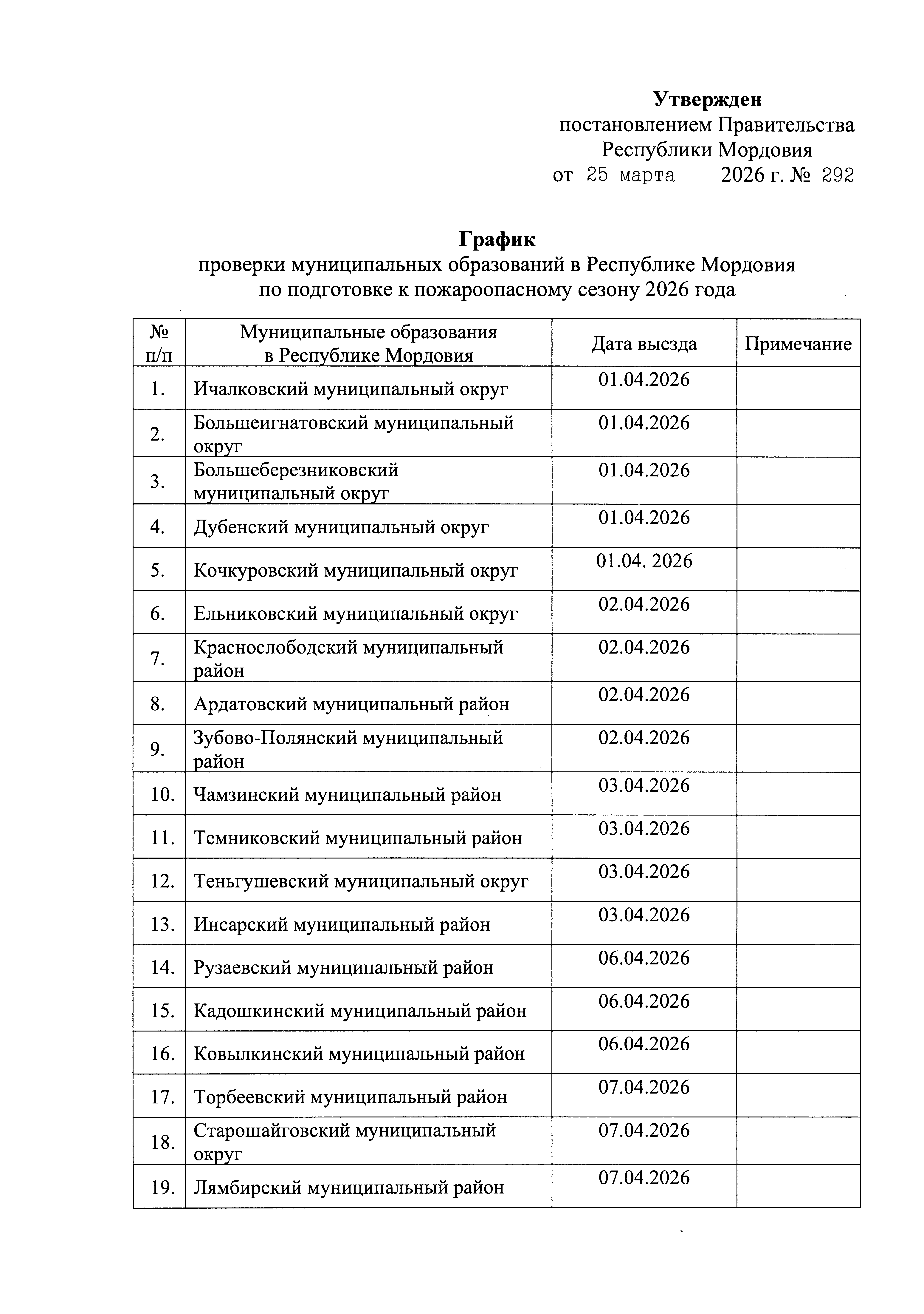 Постановление Правительства Республики Мордовия от 25.03.2026 № 292