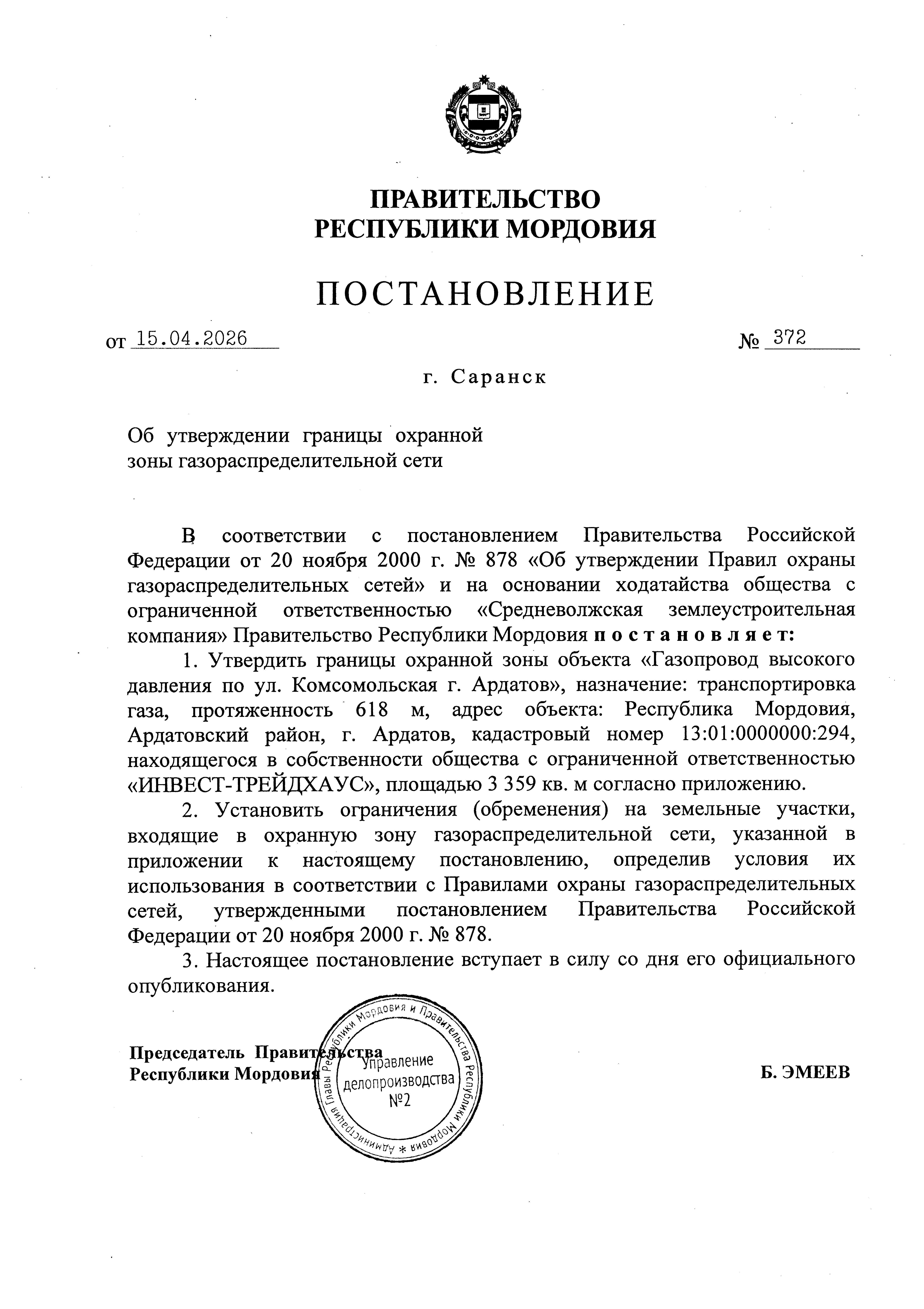 Постановление Правительства Республики Мордовия от 15.04.2026 № 372