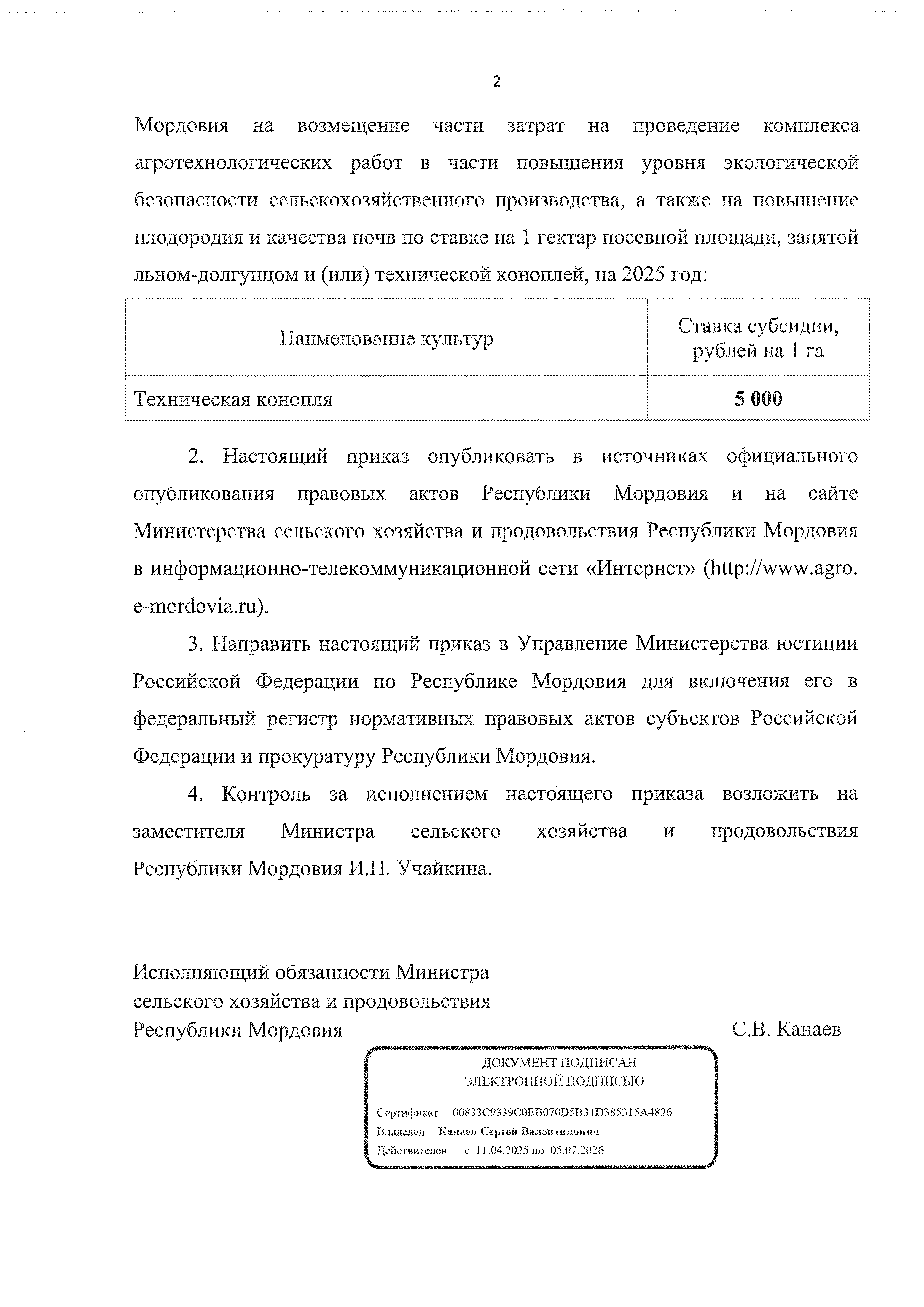 "Об утверждении ставки субсидии из республиканского бюджета Республики Мордовия на возмещение части затрат на проведение комплекса агротехнологических работ в части повышения уровня экологической безопасности сельскохозяйственного производства, а также на повышение плодородия и качества почв по ставке на 1 гектар посевной площади, занятой льном-долгунцом и (или) технической коноплей, на 2025 год"