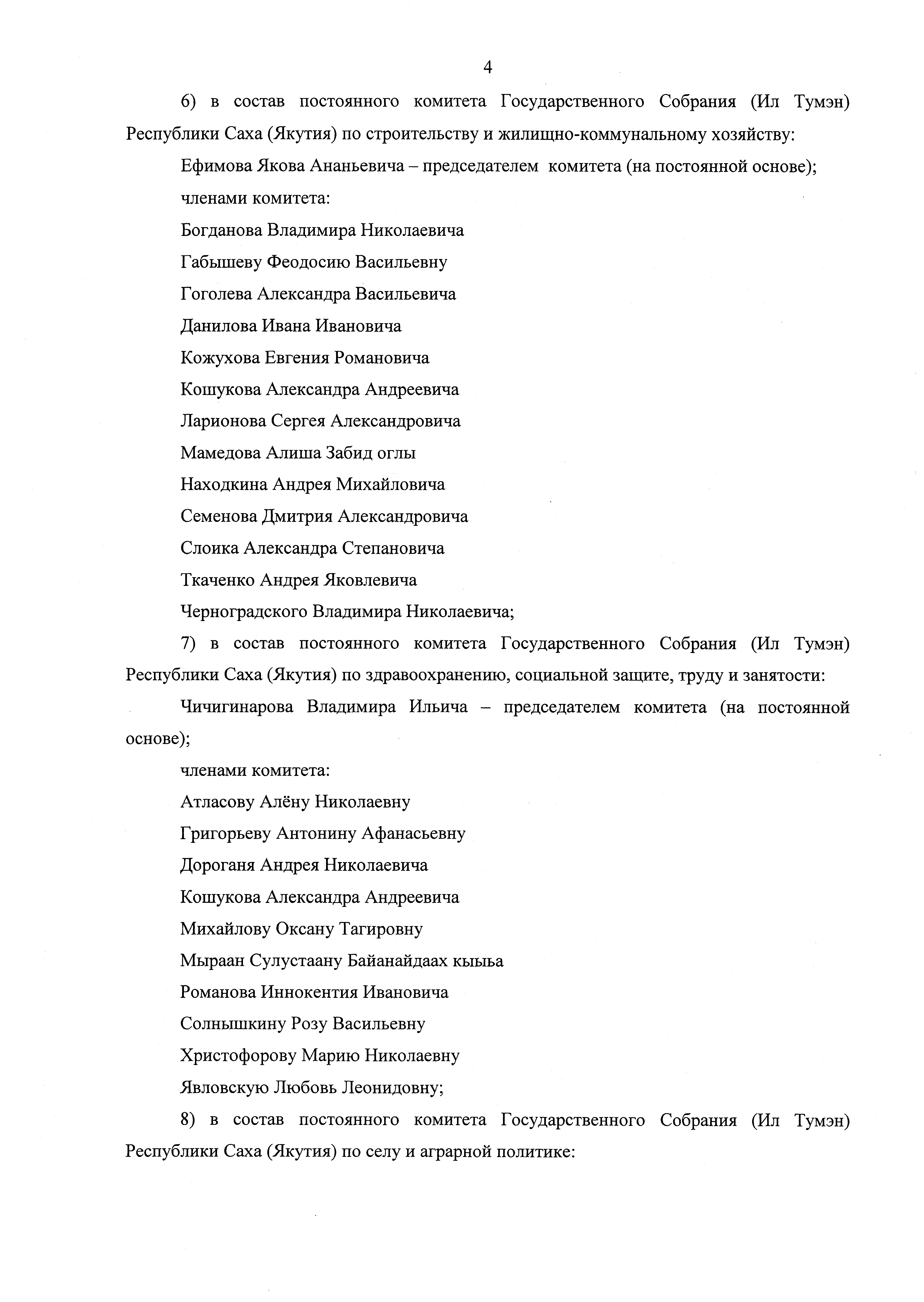 "О составах постоянных комитетов и комиссии Государственного Собрания (Ил Тумэн) Республики Саха (Якутия) шестого созыва"