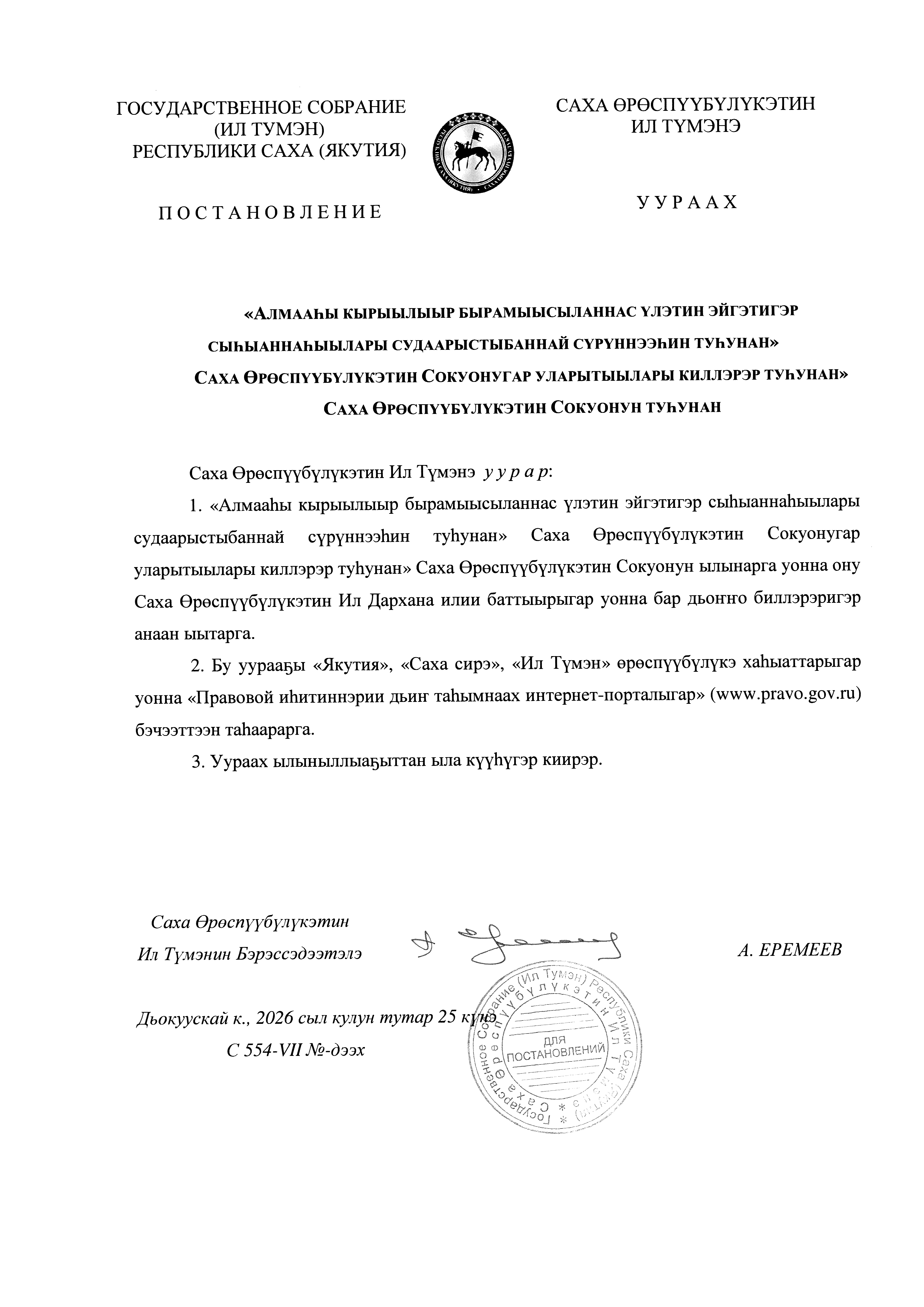 Закон Республики Саха (Якутия) от 13.04.2026 № 2939-З № 553-VII
