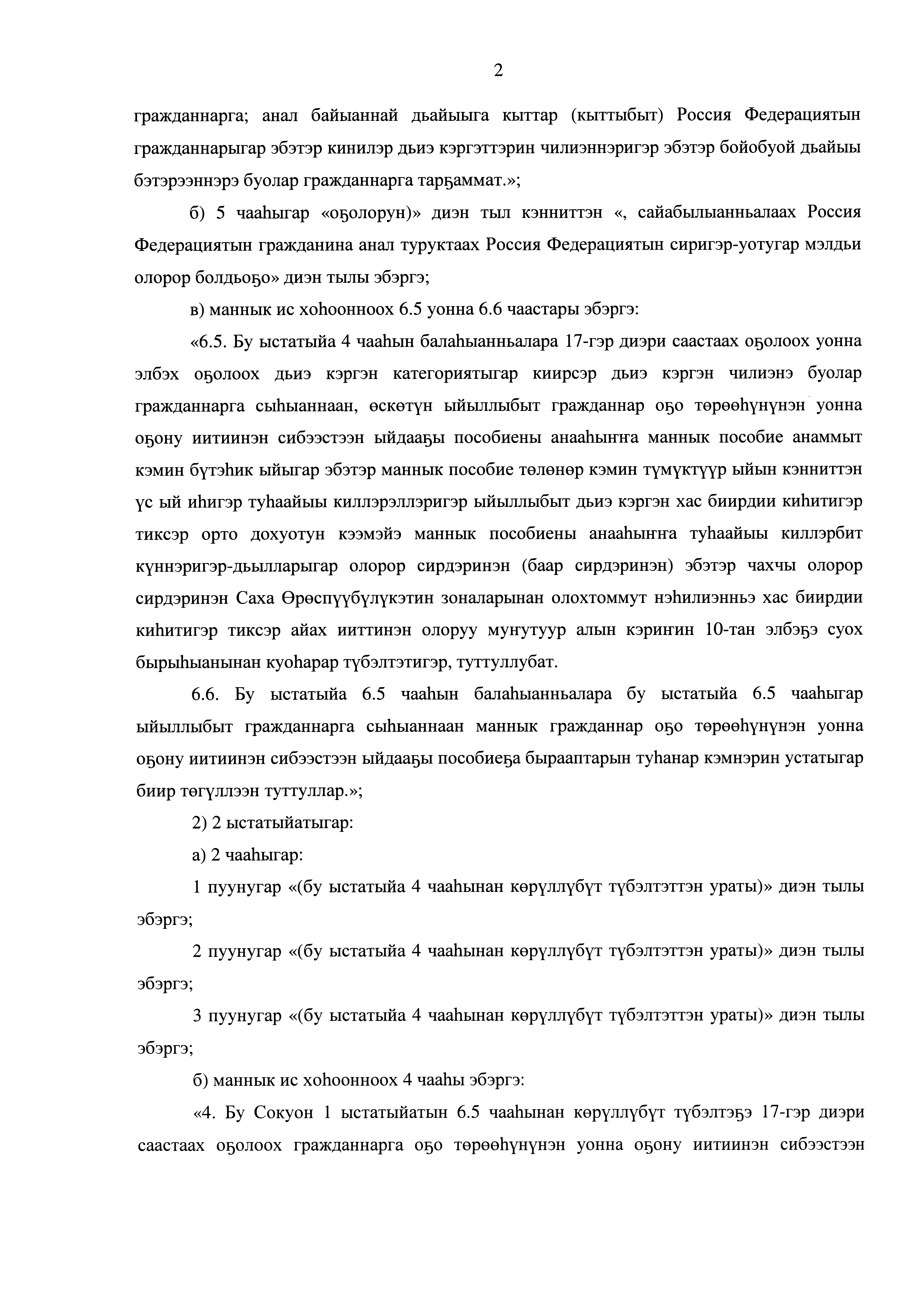 "О внесении изменений в статьи 1 и 2 Закона Республики Саха (Якутия) "О ежемесячном пособии в связи с рождением и воспитанием ребенка в Республике Саха (Якутия) и о внесении изменений в отдельные законодательные акты Республики Саха (Якутия)"