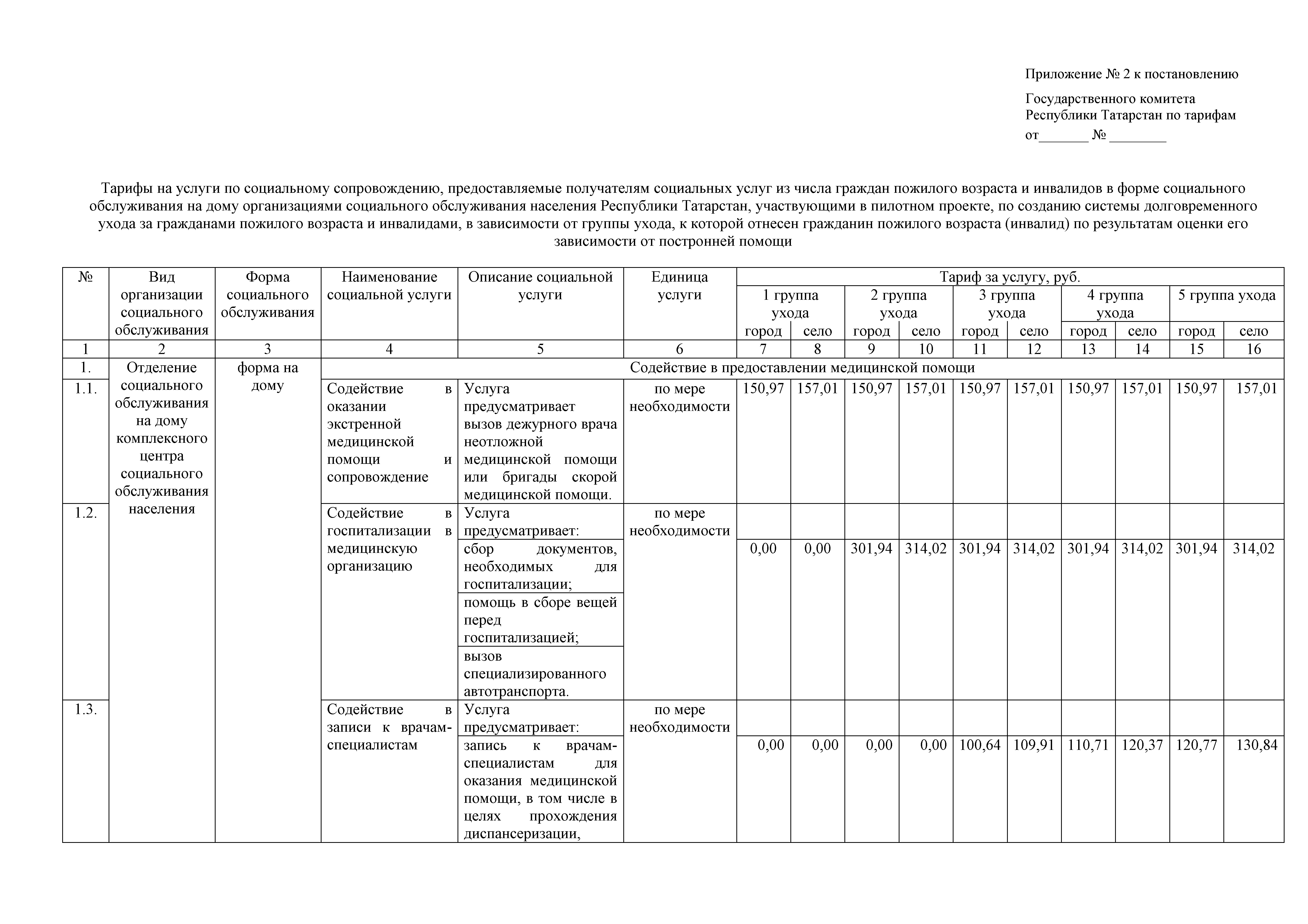 "Об установлении тарифов на социальные услуги, предоставляемые в форме социального обслуживания на дому организациями социального обслуживания населения Республики Татарстан, участвующими в пилотном проекте по созданию системы долговременного ухода за гражданами пожилого возраста и инвалидами"