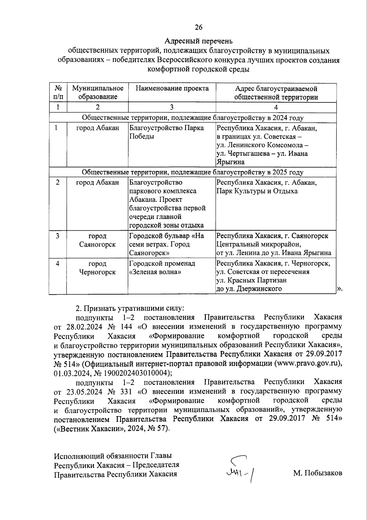 "О внесении изменений в государственную программу Республики Хакасия "Формирование комфортной городской среды и благоустройство территории муниципальных образований Республики Хакасия", утвержденную постановлением Правительства Республики Хакасия от 29.09.2017 № 514, и о признании утратившими силу отдельных положений некоторых постановлений Правительства Республики Хакасия"