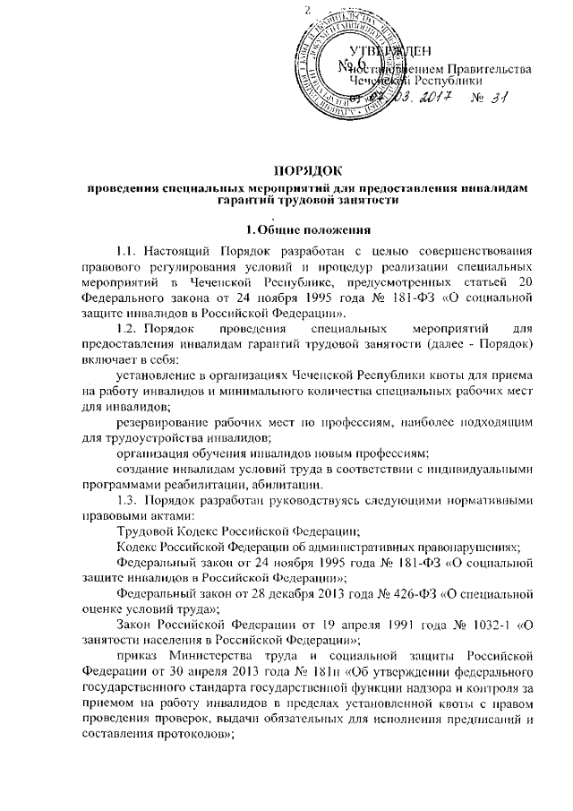 Постановление Правительства Чеченской Республики от 07.03.2017 № 31
