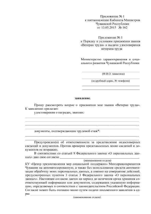 Постановление Кабинета Министров Чувашской Республики от 13.05.2015 № 162