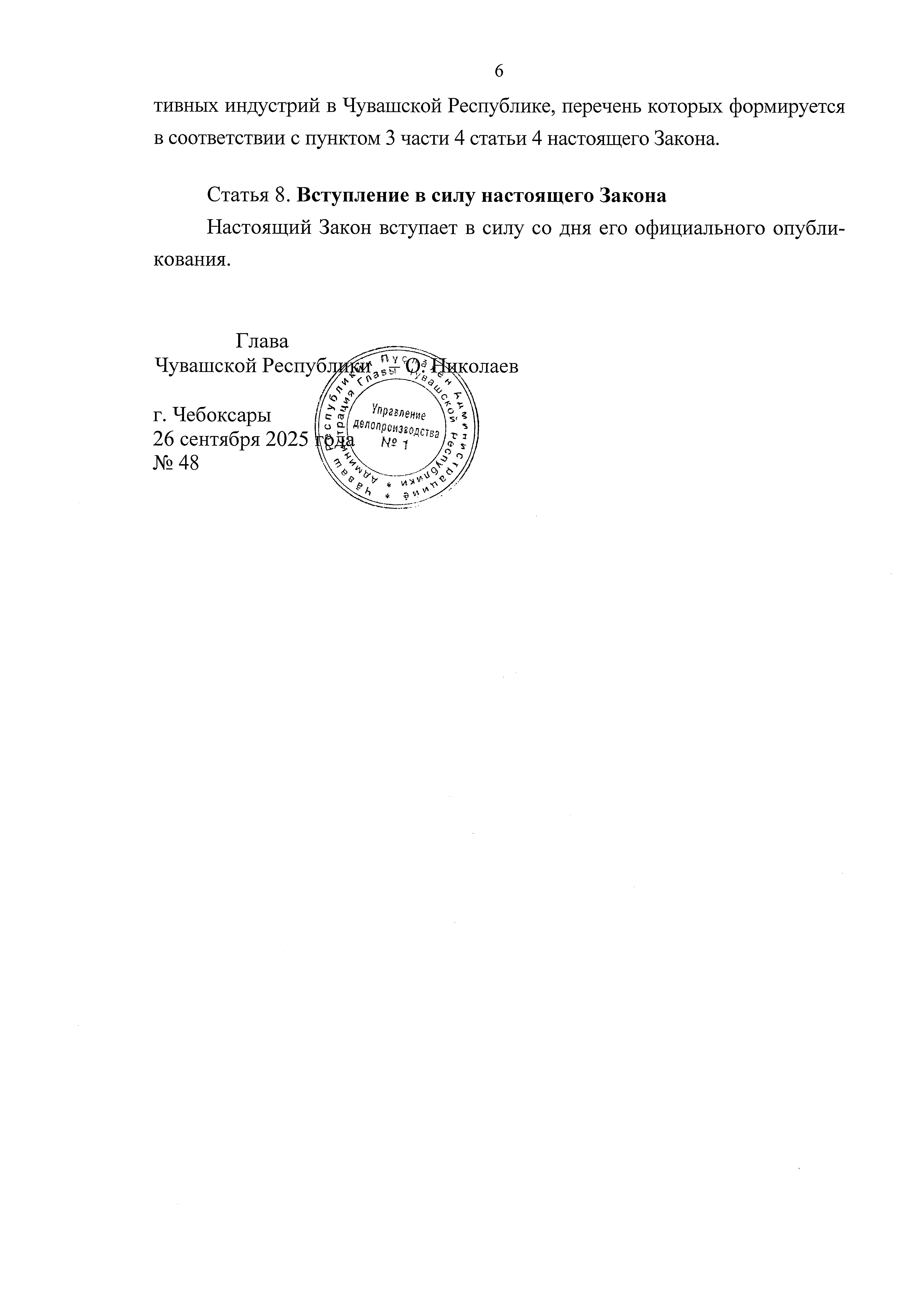 Закон Чувашской Республики от 26.09.2025 № 48