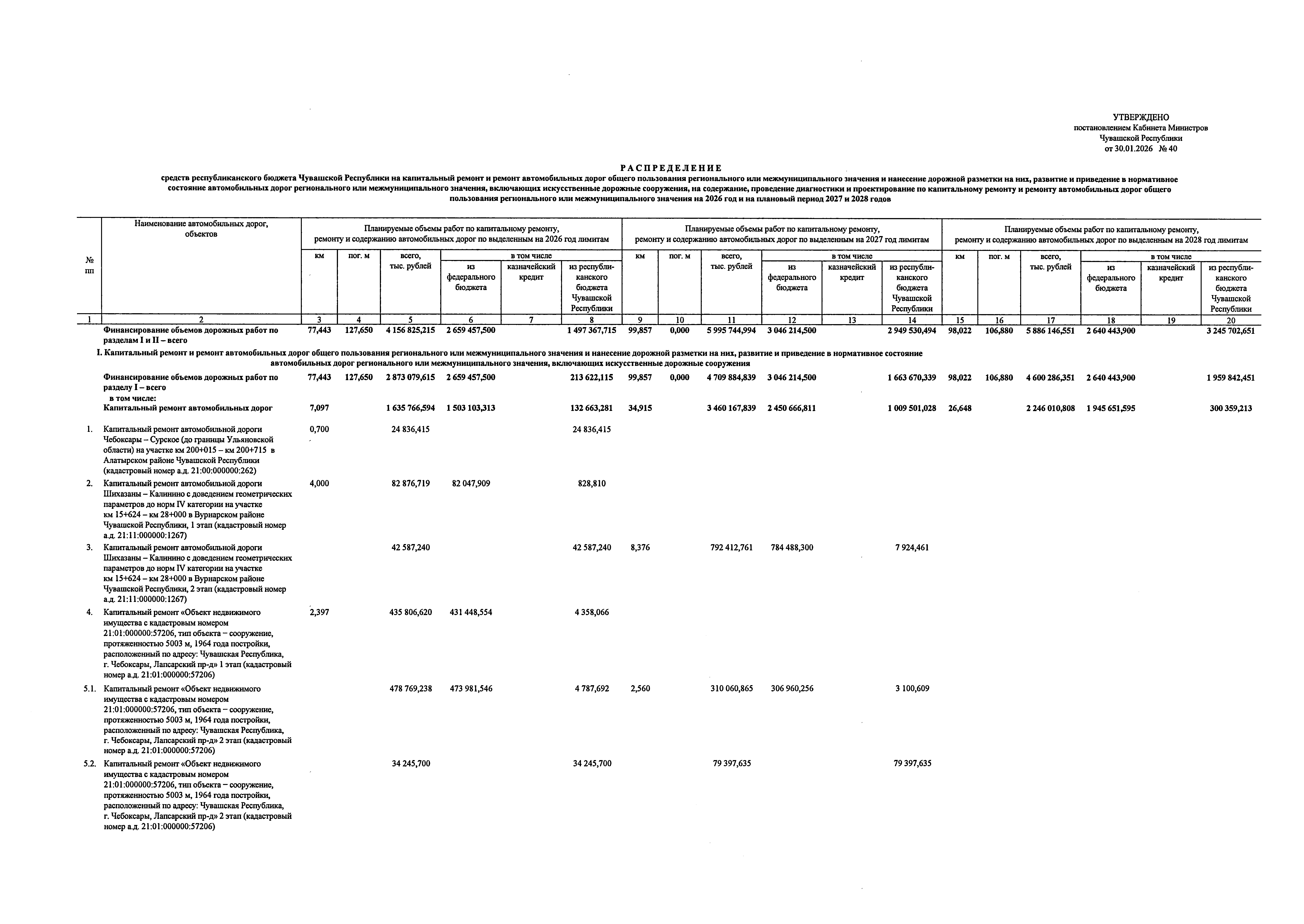 Постановление Кабинета Министров Чувашской Республики от 30.01.2026 № 40