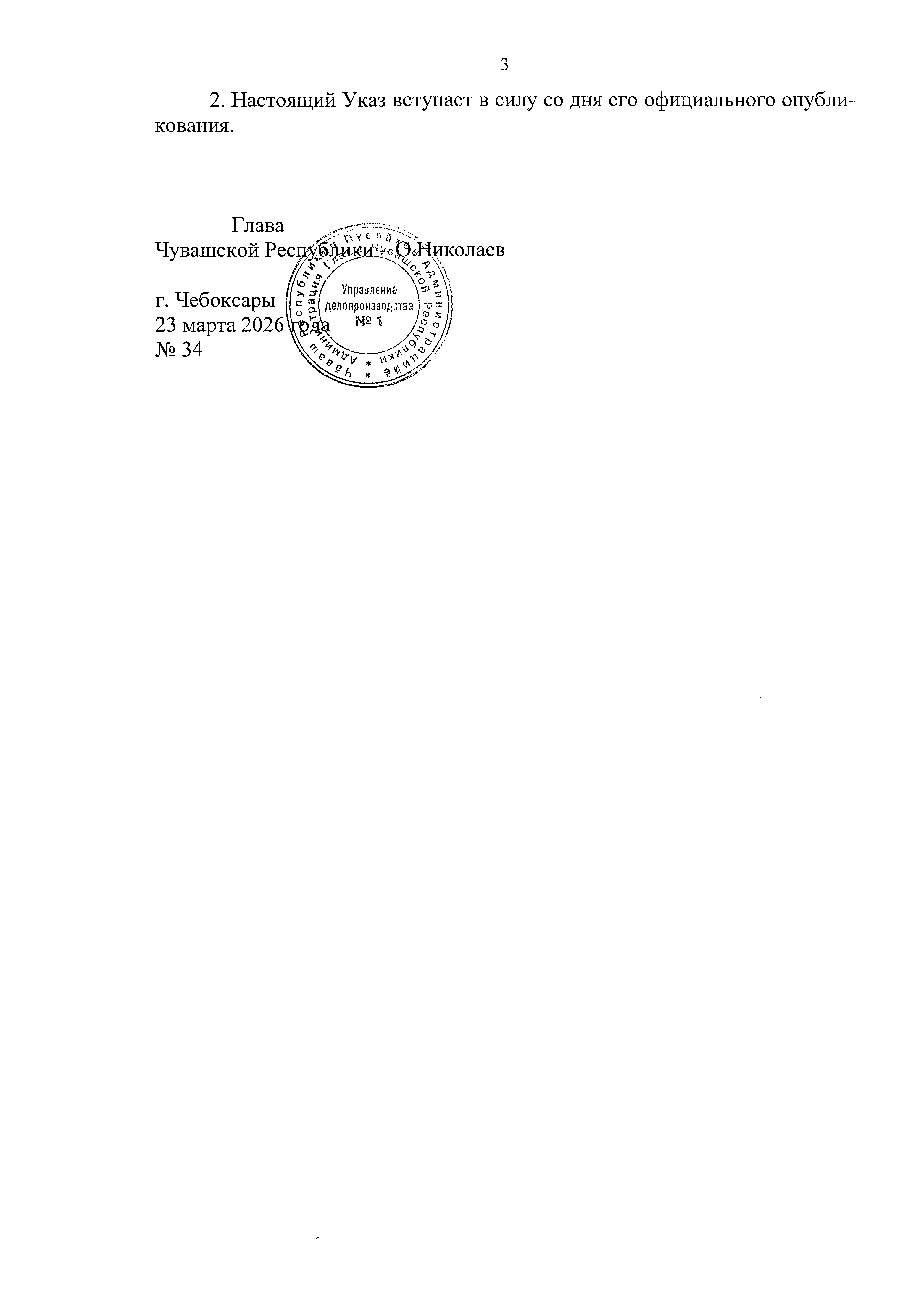 Указ Главы Чувашской Республики от 23.03.2026 № 34