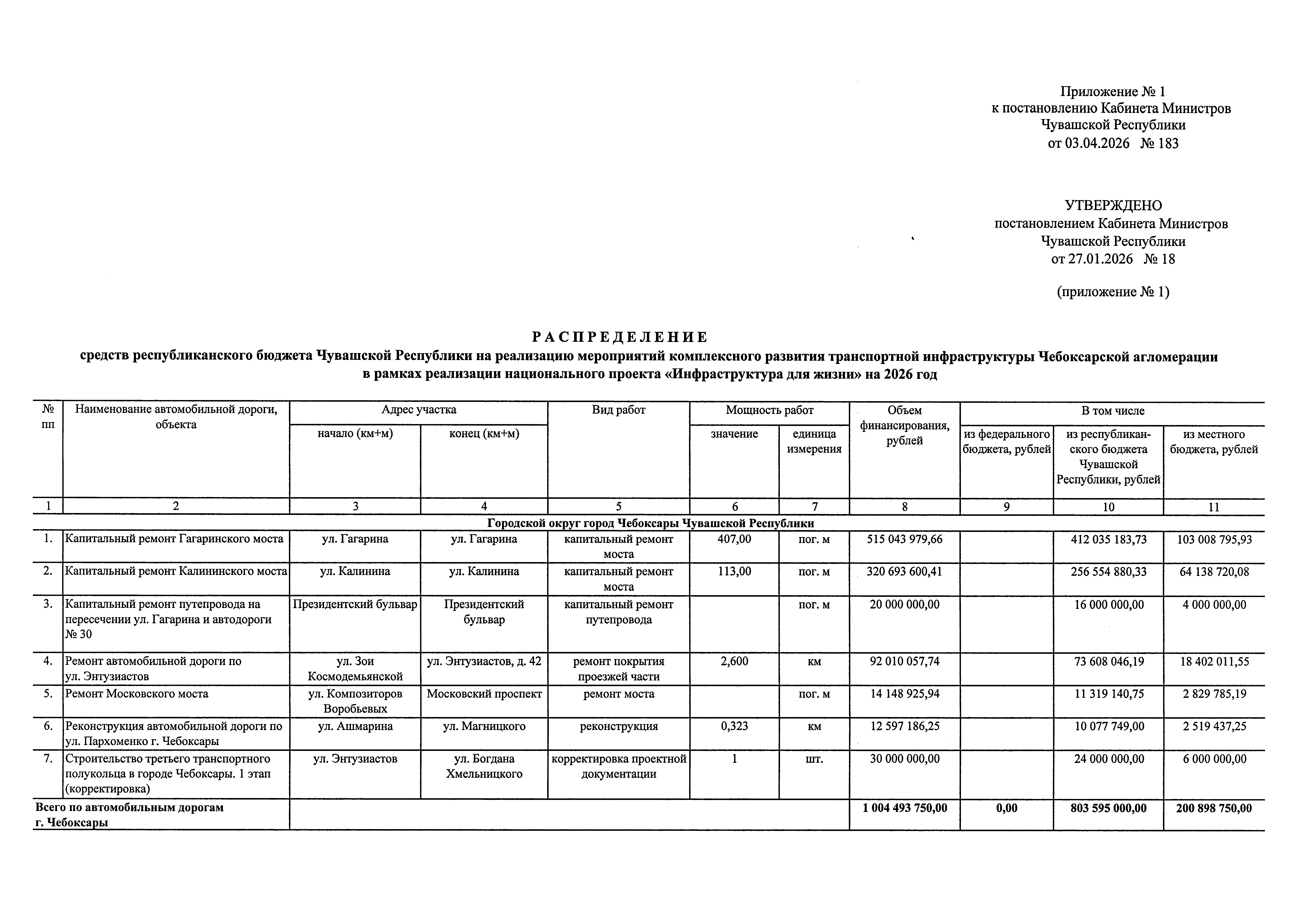 Постановление Кабинета Министров Чувашской Республики от 03.04.2026 № 183