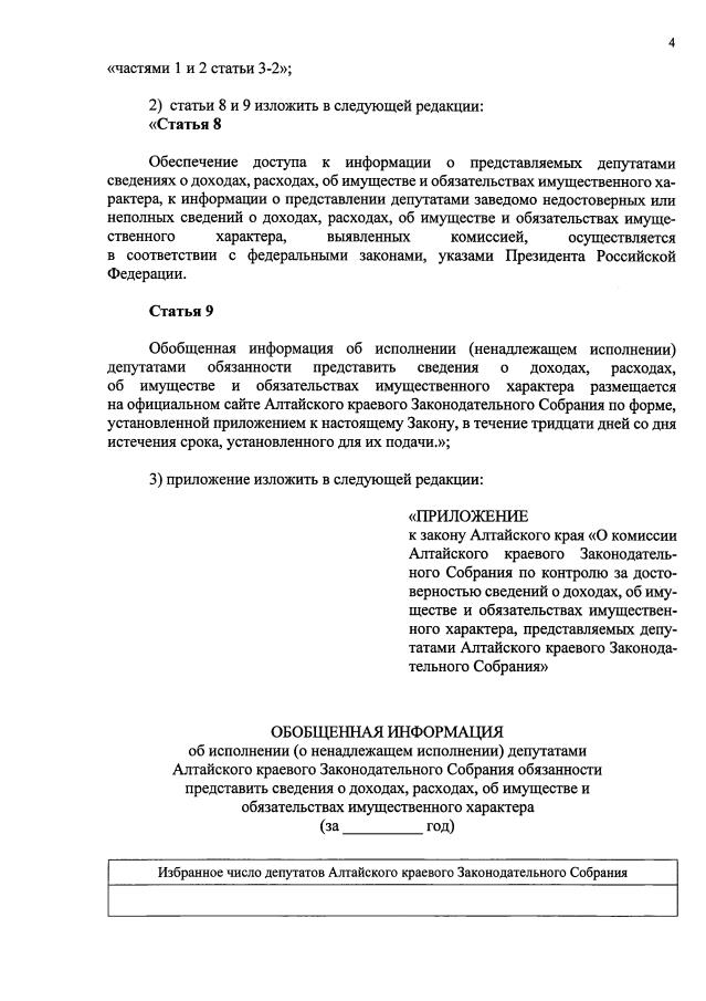 "О внесении изменений в статью 6 закона Алтайского края "О статусе депутата Алтайского краевого Законодательного Собрания" и закон Алтайского края "О комиссии Алтайского краевого Законодательного Собрания по контролю за достоверностью сведений о доходах, об имуществе и обязательствах имущественного характера, представляемых депутатами Алтайского краевого Законодательного Собрания"