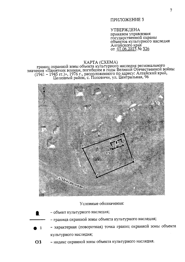 "Об установлении зоны охраны объекта культурного наследия регионального значения "Памятник воинам, погибшим в годы Великой Отечественной войны (1941 – 1945 гг.)", 1976 г., расположенного по адресу: Алтайский край, Целинный район, с. Поповичи, ул. Центральная, 96, утверждении режима использования земель и требований к градостроительным регламентам в границах территории данной зоны"