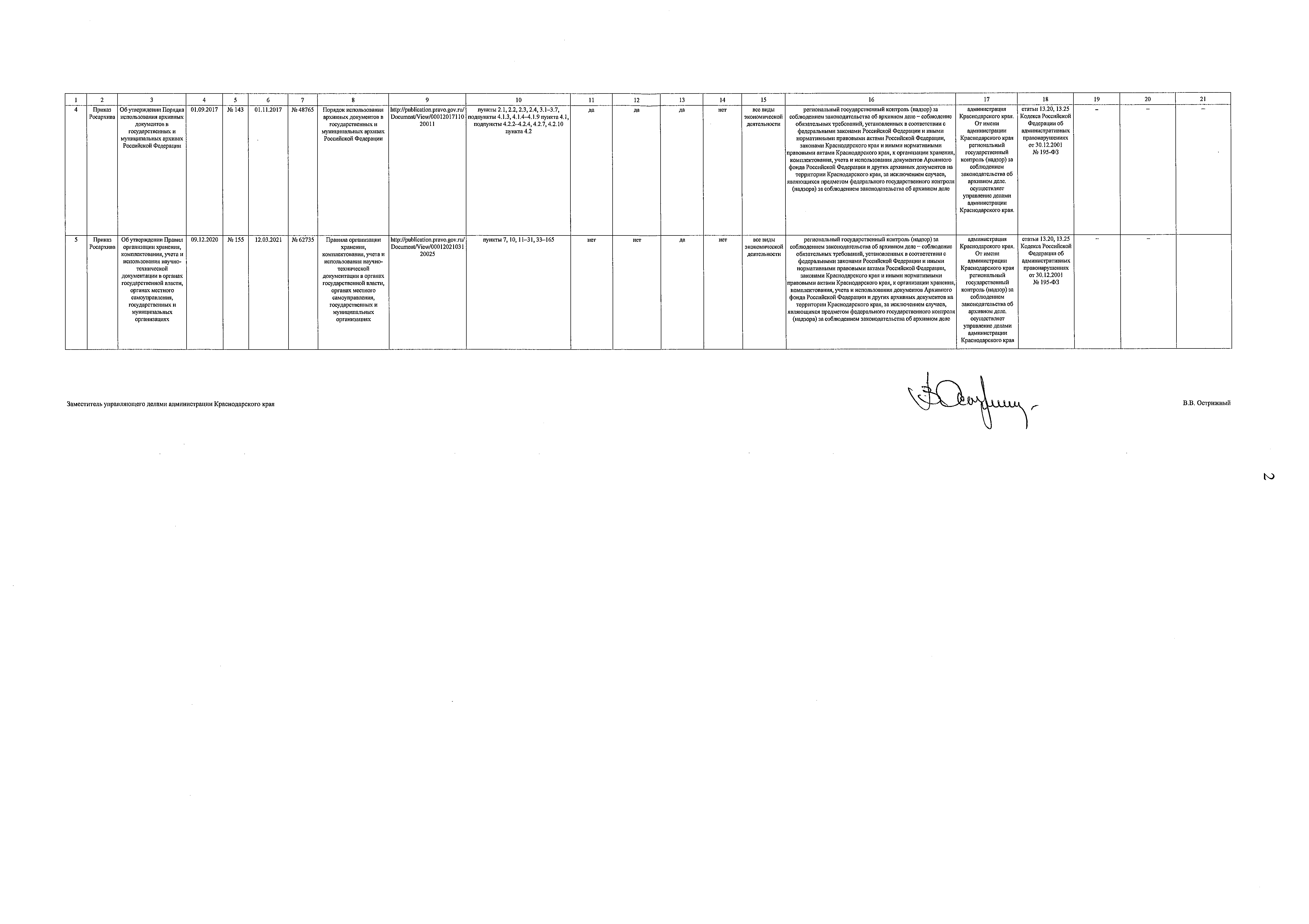 "О внесении изменений в приказ администрации Краснодарского края от 18 февраля 2019 г. № 41 "Об утверждении Перечня нормативных правовых актов, содержащих обязательные требования, соблюдение которых оценивается при осуществлении на территории Краснодарского края контроля за соблюдением законодательства об архивном деле в Российской Федерации, и порядка его ведения"