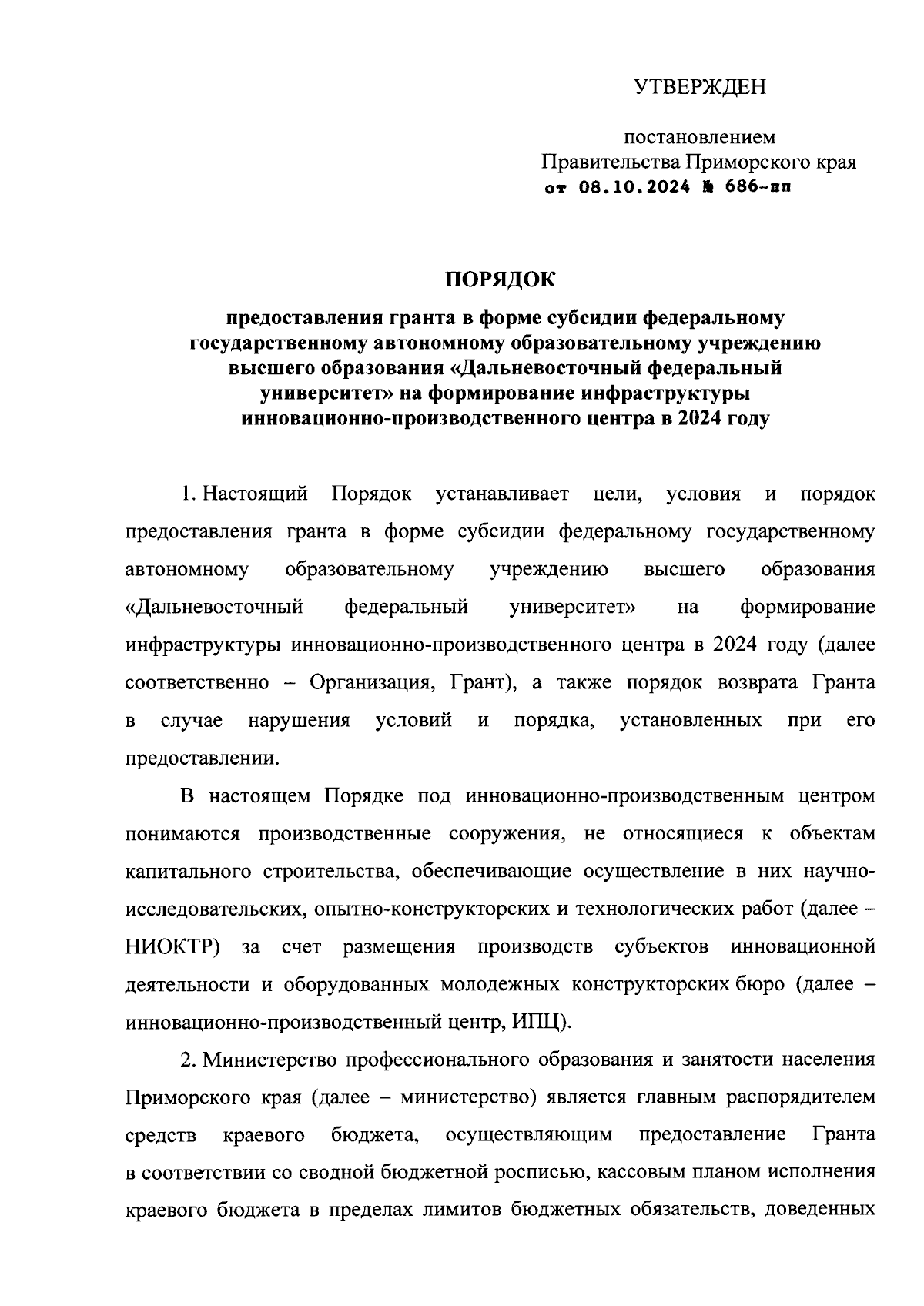 Постановление Правительства Приморского края от 08.10.2024 № 686-пп
