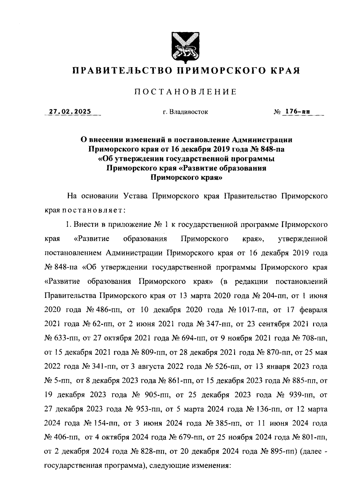 Постановление Правительства Приморского края от 27.02.2025 № 176-пп