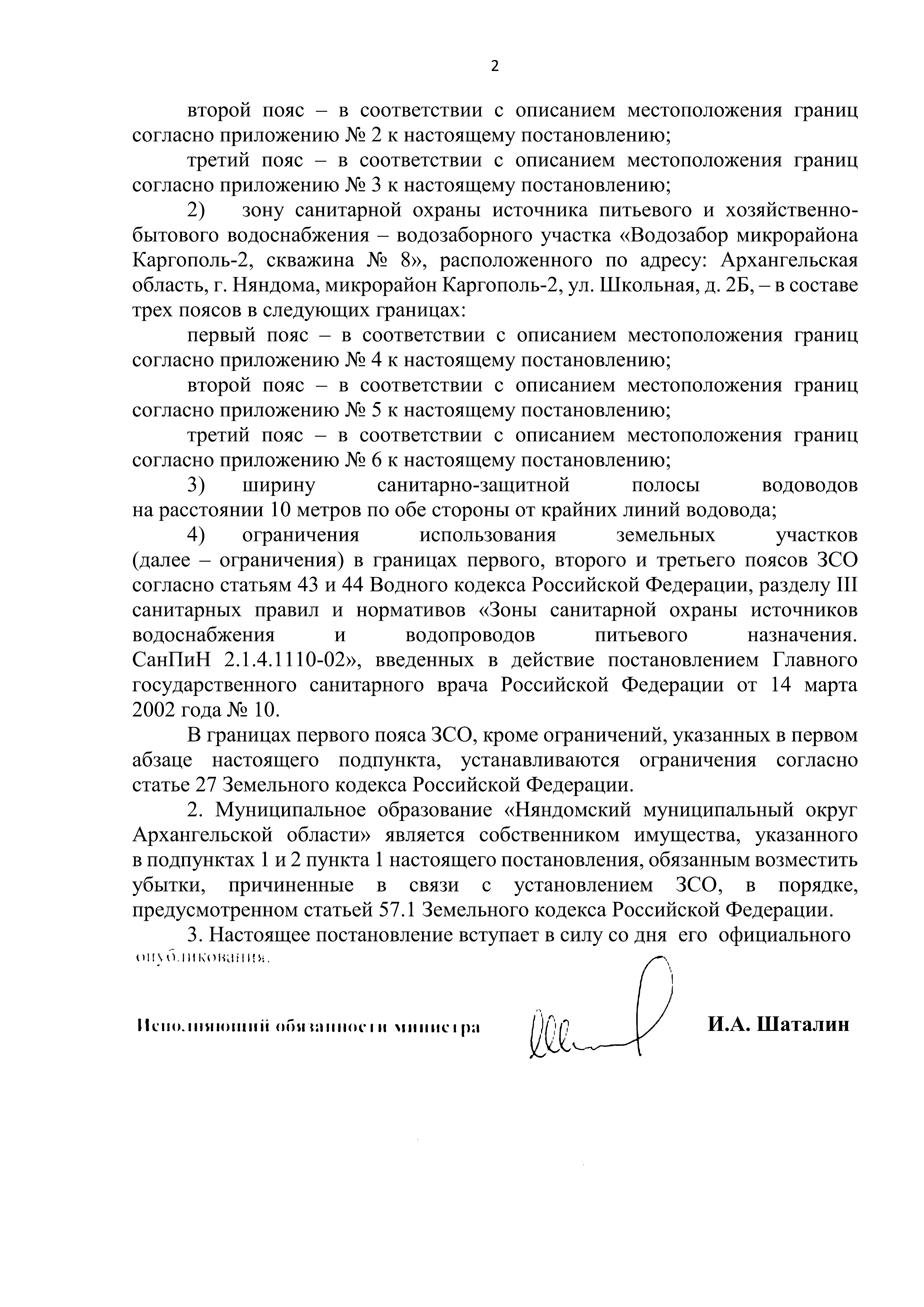"Об установлении зоны санитарной охраны источника питьевого и хозяйственно-бытового водоснабжения"