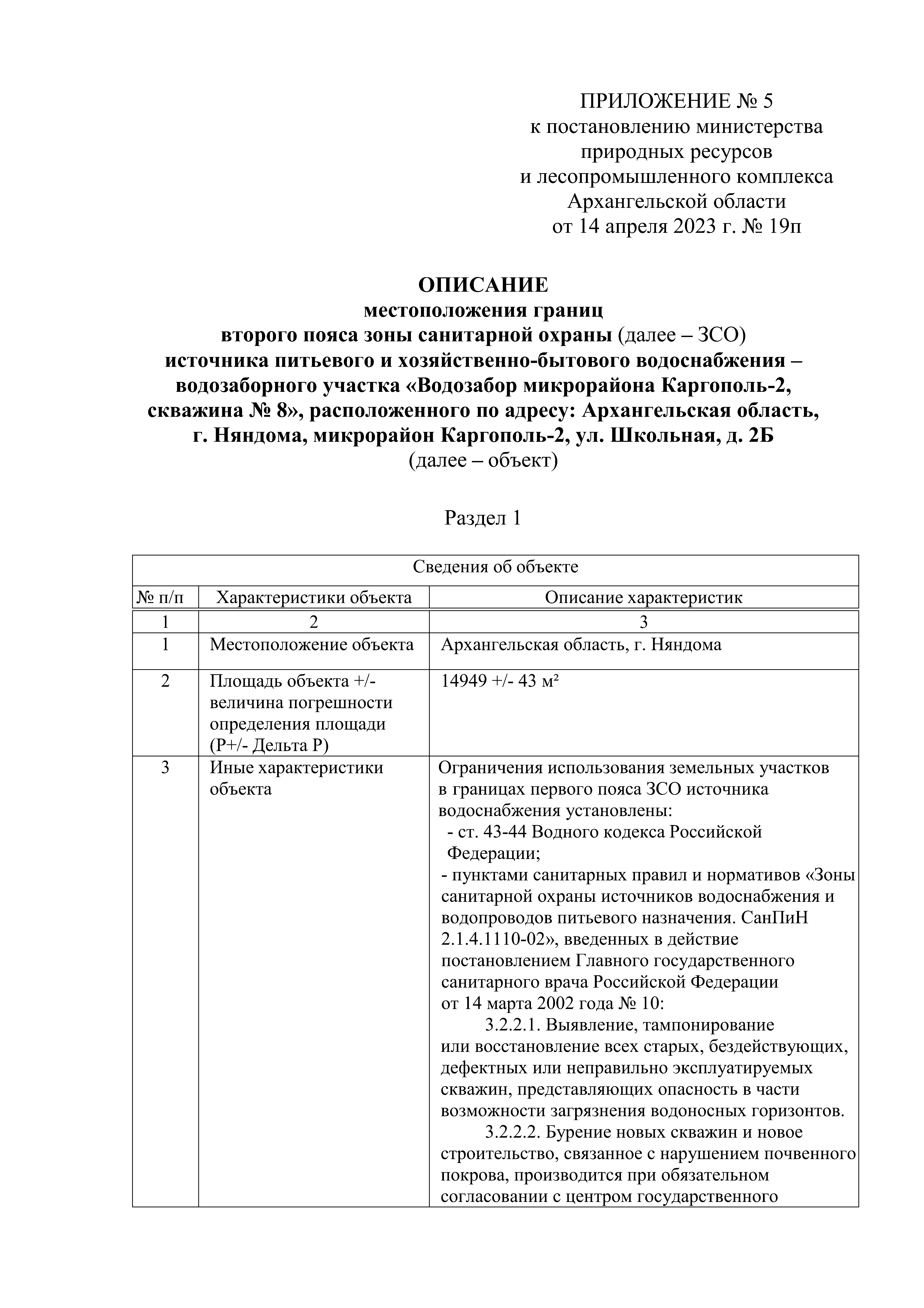 "Об установлении зоны санитарной охраны источника питьевого и хозяйственно-бытового водоснабжения"