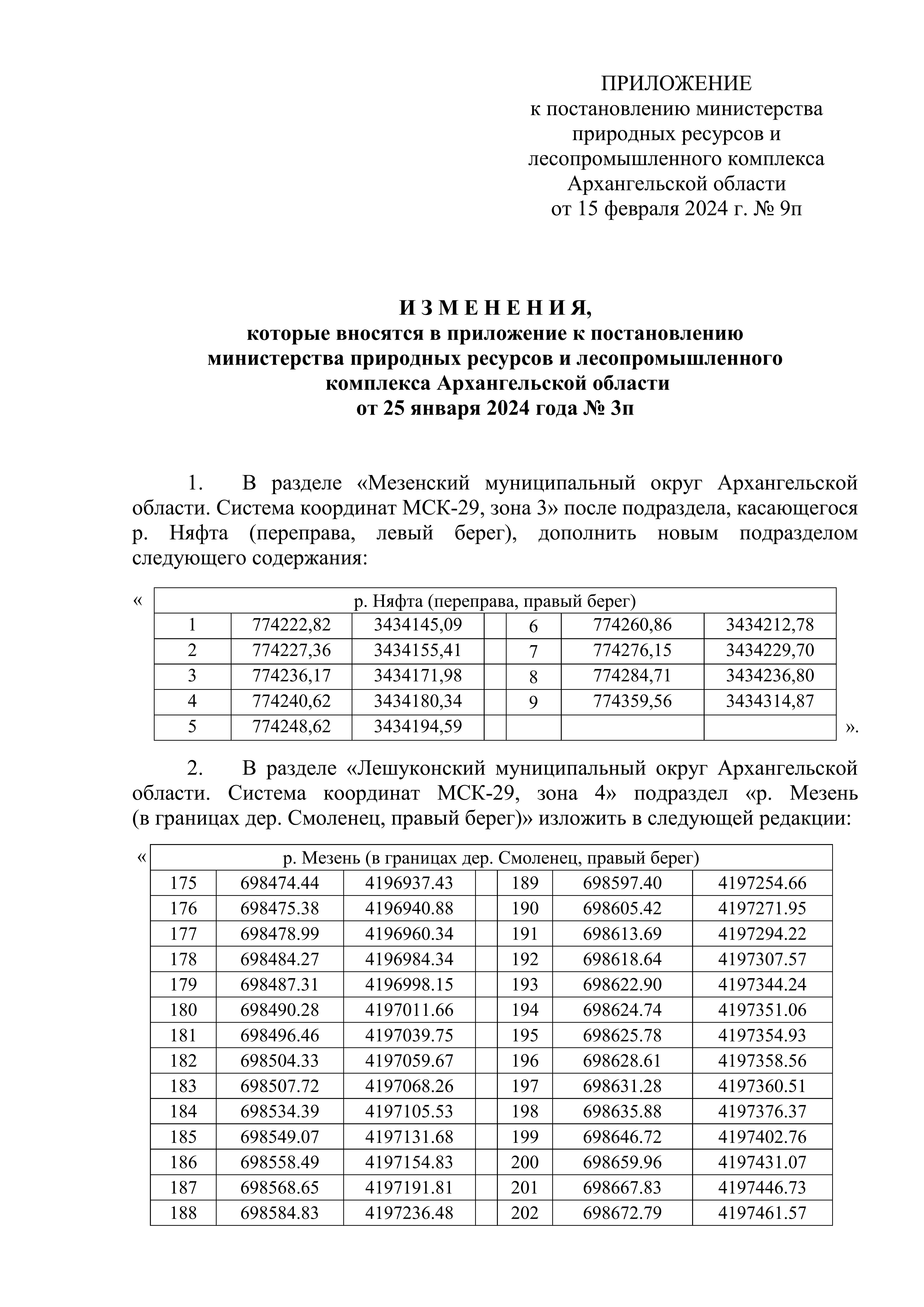 "О внесении изменений в приложение к постановлению министерства природных ресурсов и лесопромышленного комплекса Архангельской области от 25 января 2024 года № 3п"