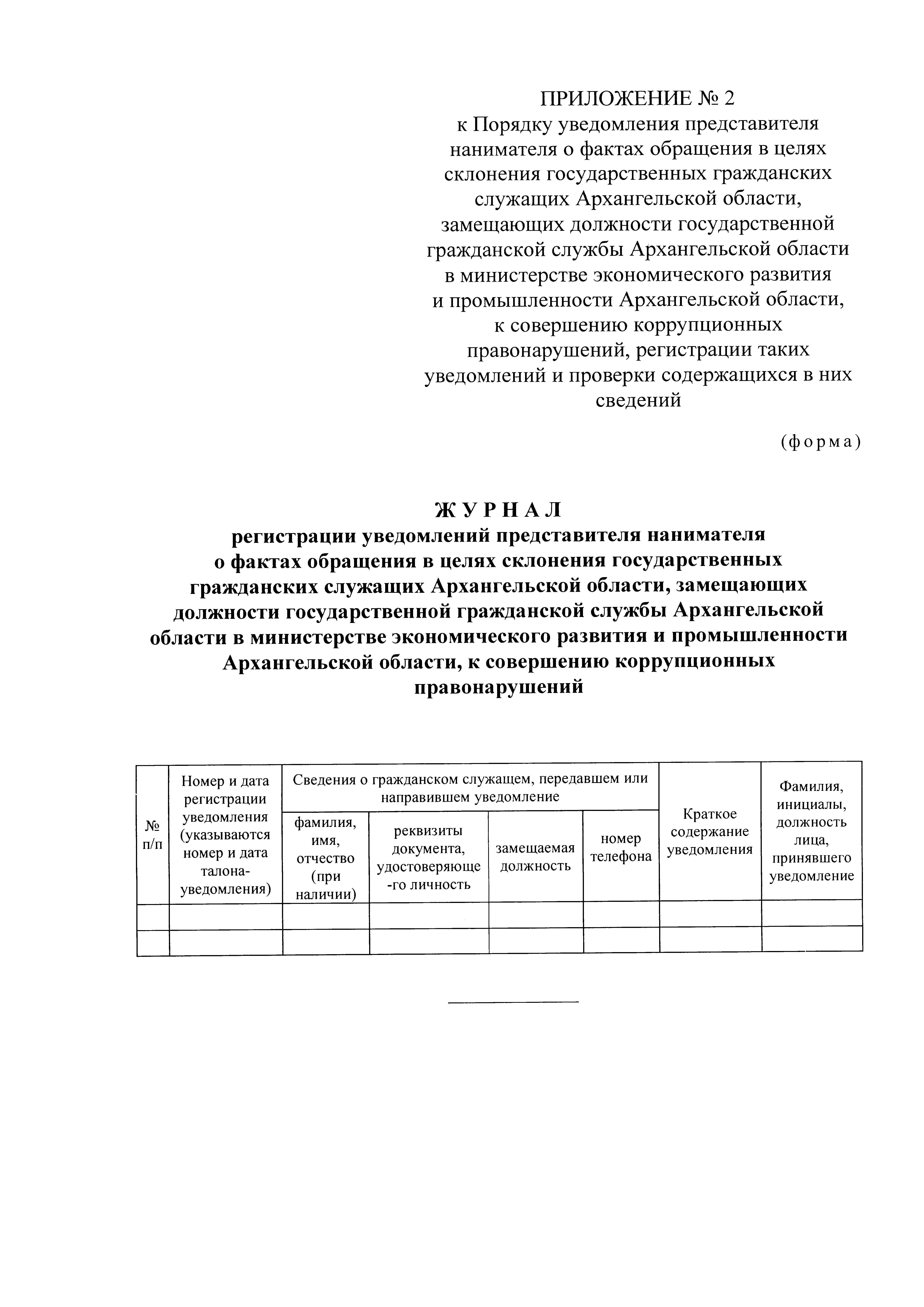 "Об утверждении Порядка уведомления представителя нанимателя о фактах обращения в целях склонения государственных гражданских служащих Архангельской области, замещающих должности государственной гражданской службы Архангельской области в министерстве экономического развития и промышленности Архангельской области, к совершению коррупционных правонарушений, регистрации таких уведомлений и проверки содержащихся в них сведений"