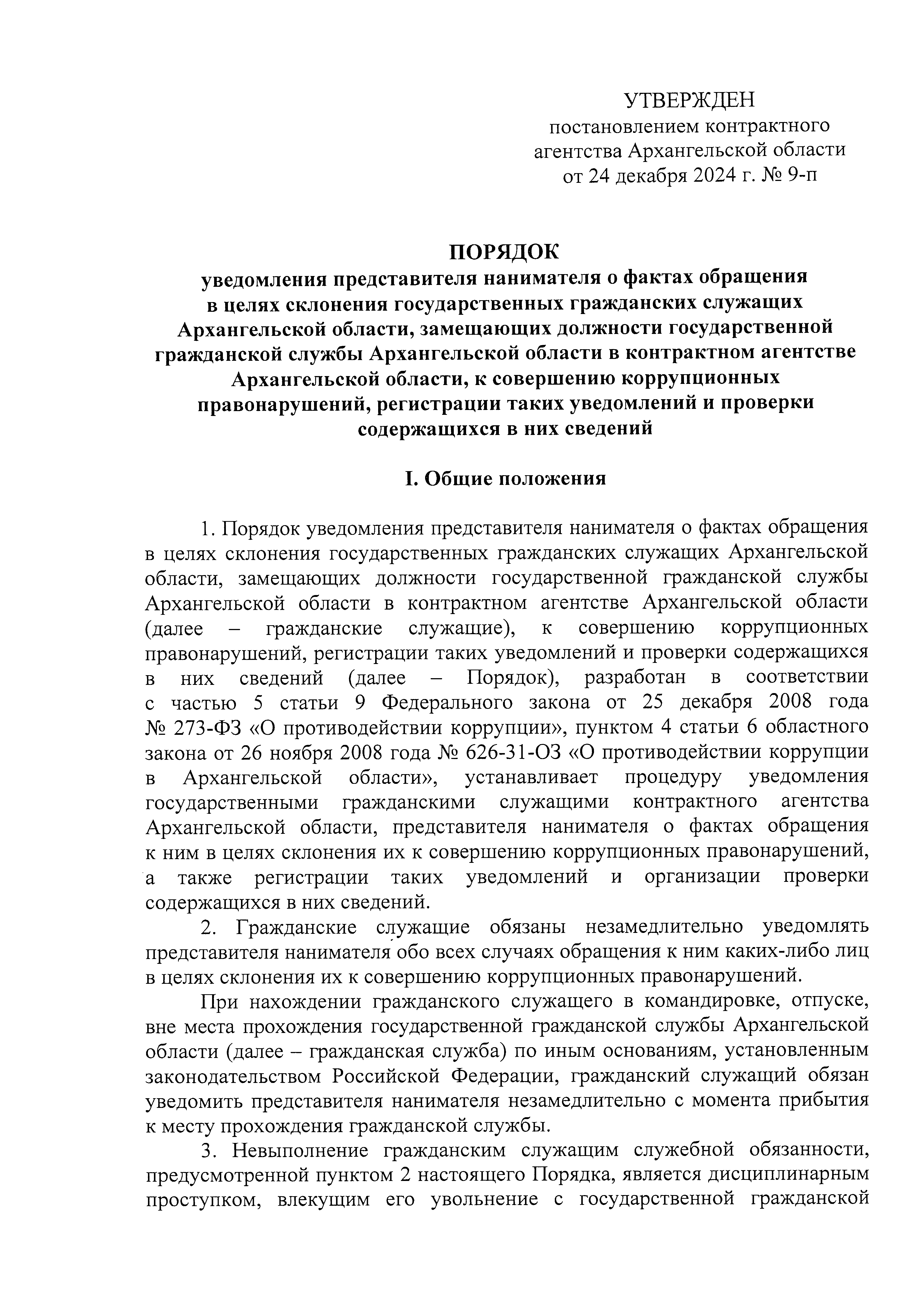 Постановление Контрактного агентства Архангельской области от 24.12.2024 № 9-п