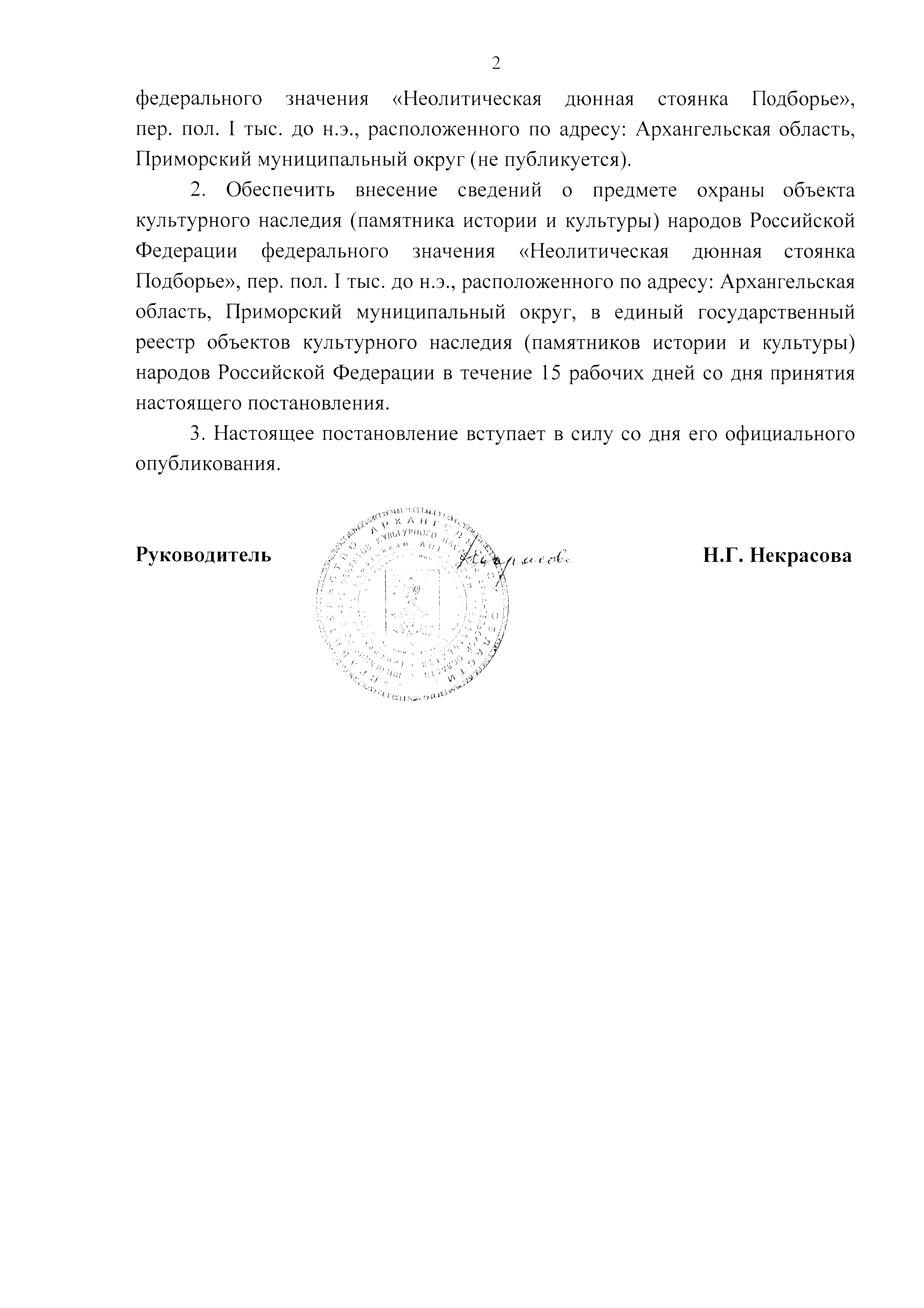 "Об утверждении предмета охраны объекта культурного наследия (памятника истории и культуры) народов Российской Федерации федерального значения "Неолитическая дюнная стоянка Подборье", пер. пол. I тыс. до н.э., расположенного по адресу: Архангельская область, Приморский муниципальный округ"