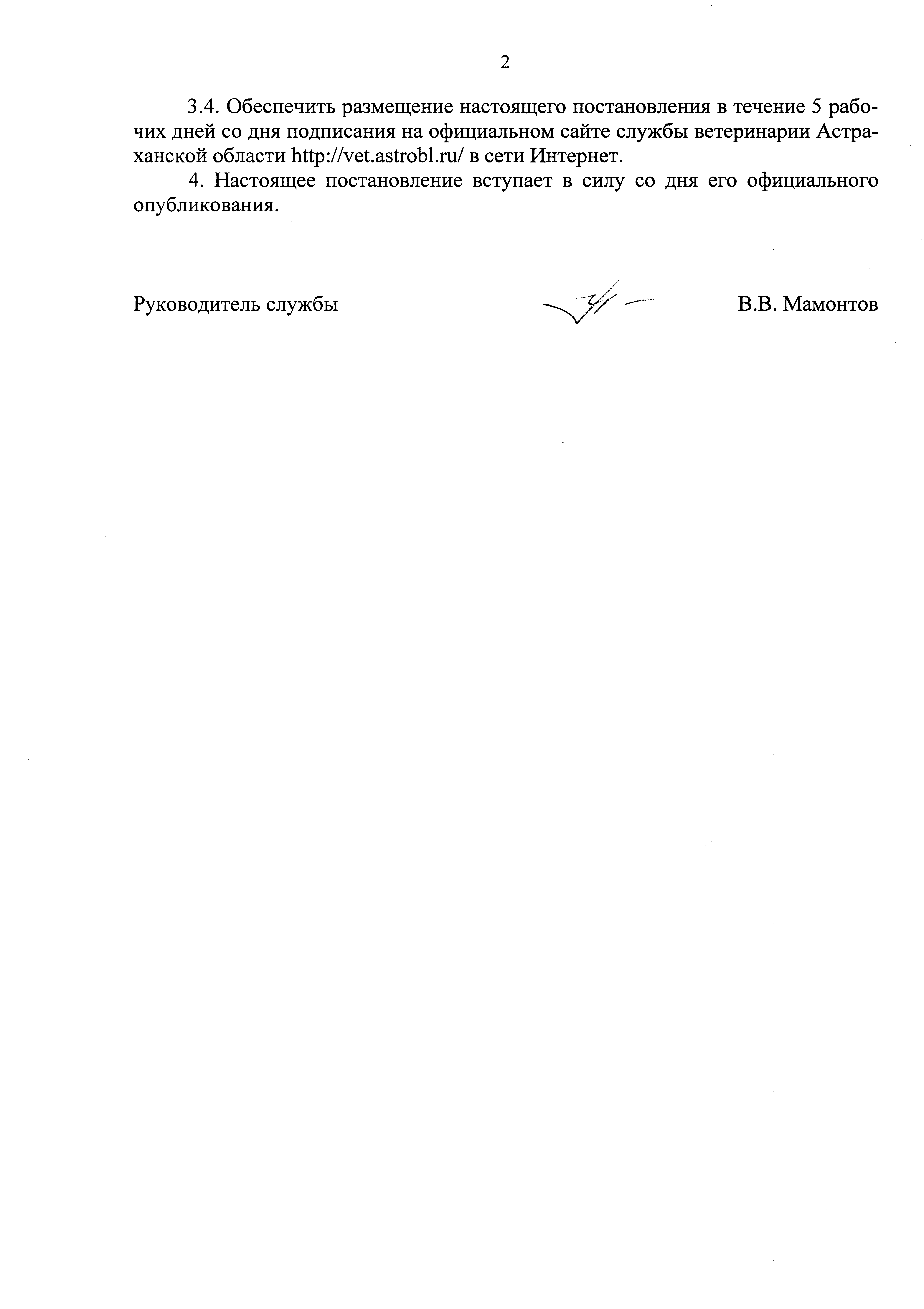 Постановление Службы ветеринарии Астраханской области от 29.04.2022 № 30