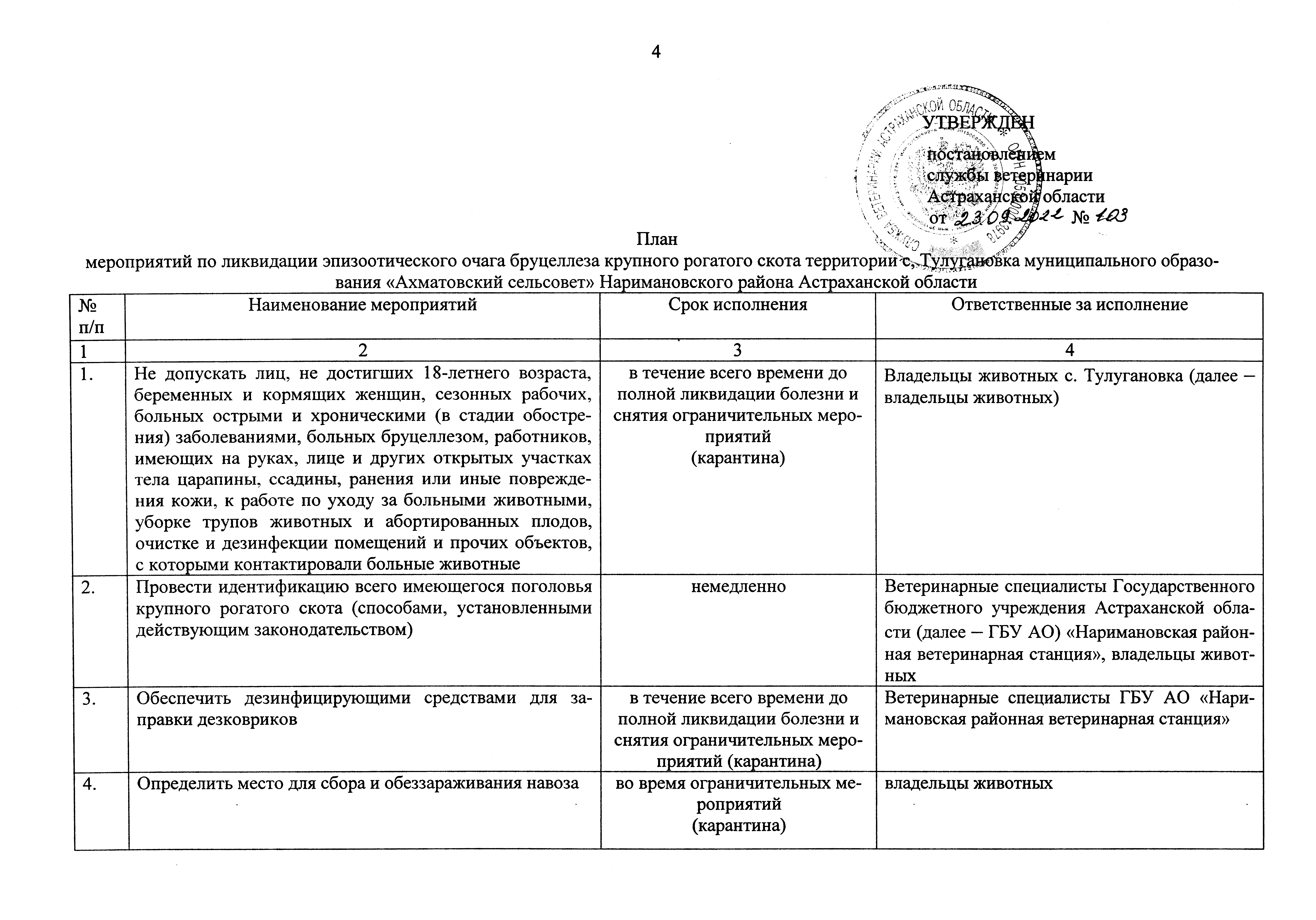 Постановление Службы ветеринарии Астраханской области от 23.09.2022 № 103