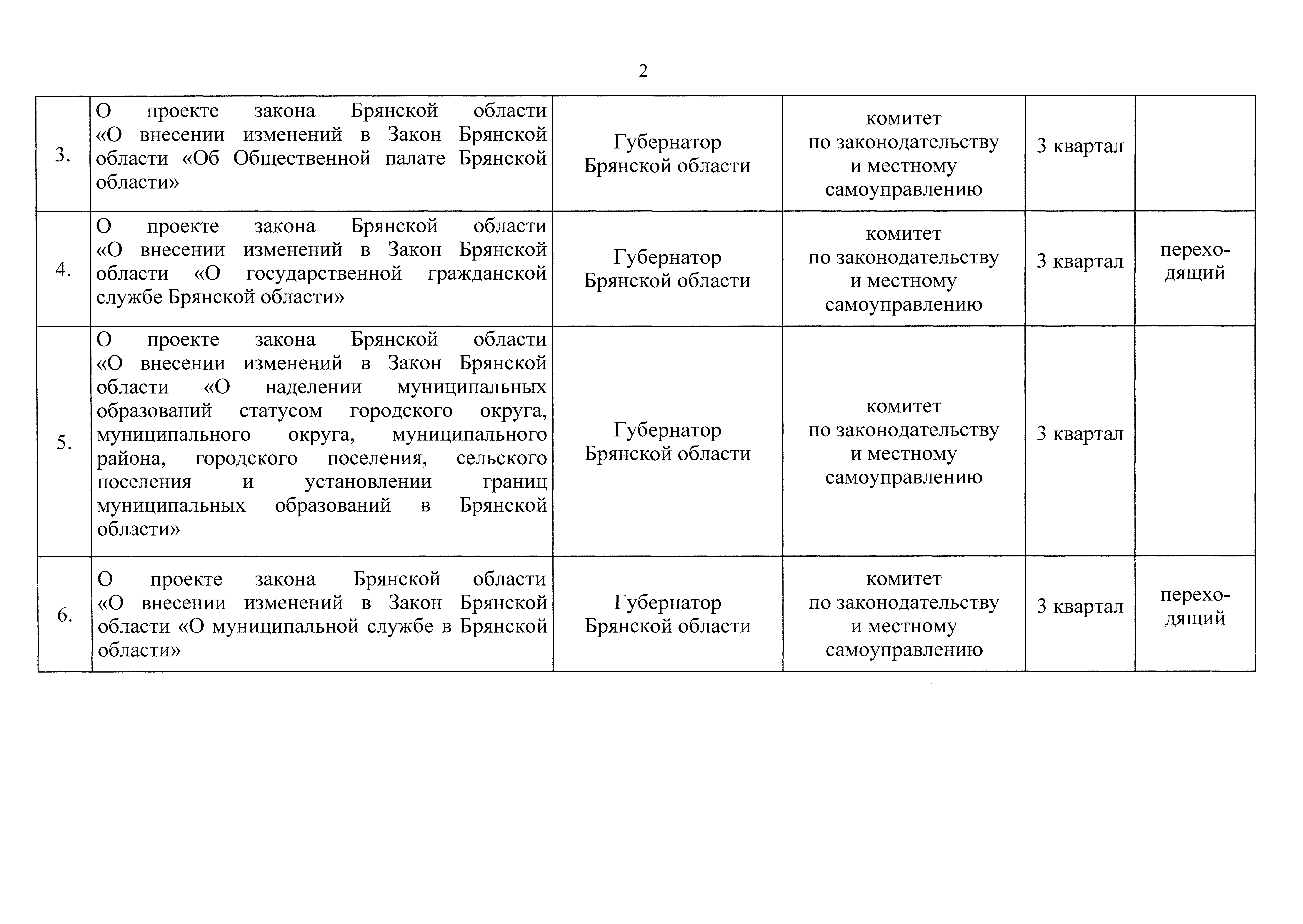 "О плане законотворческой деятельности Брянской областной Думы на второе полугодие 2021 года"