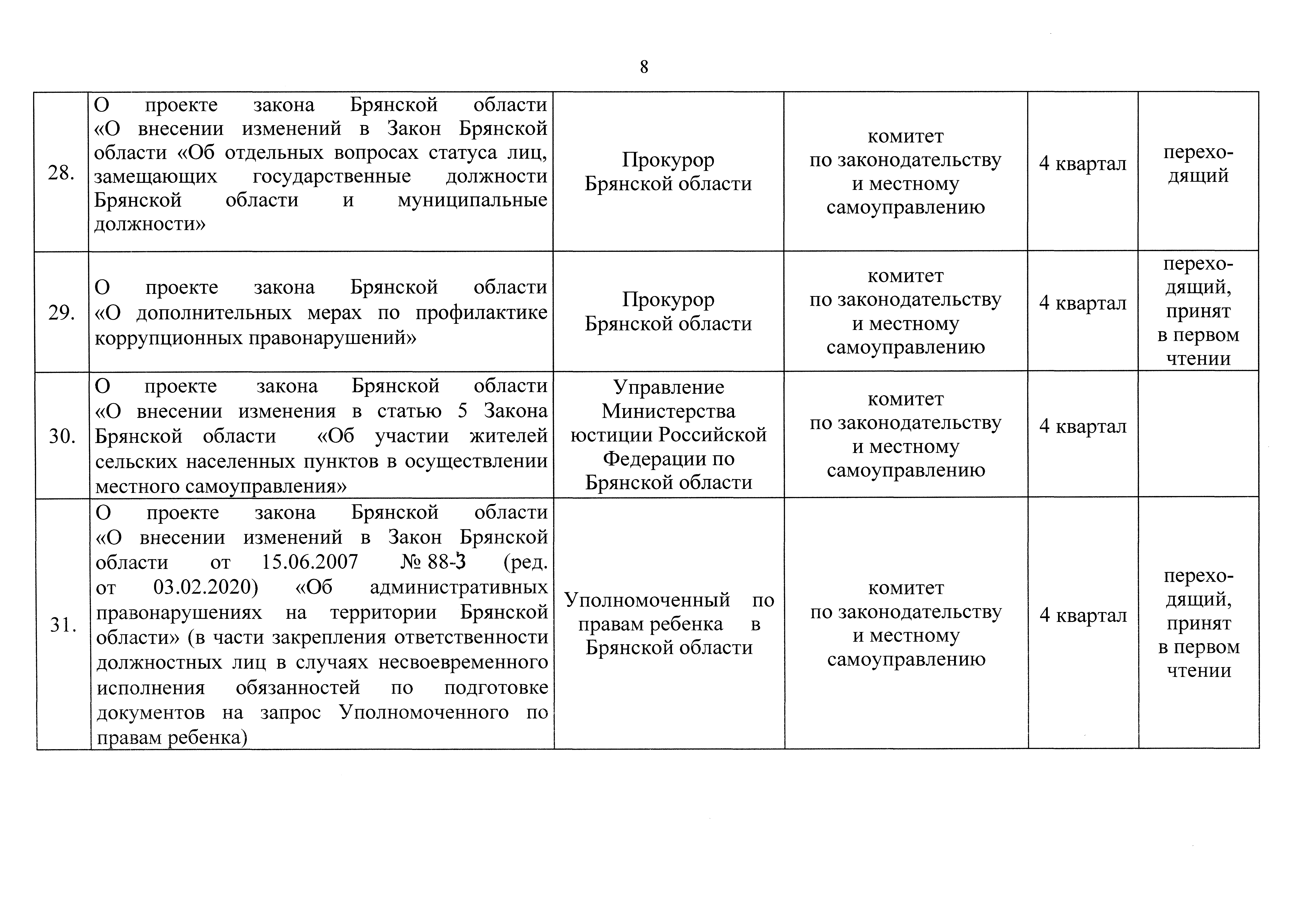 "О плане законотворческой деятельности Брянской областной Думы на второе полугодие 2021 года"