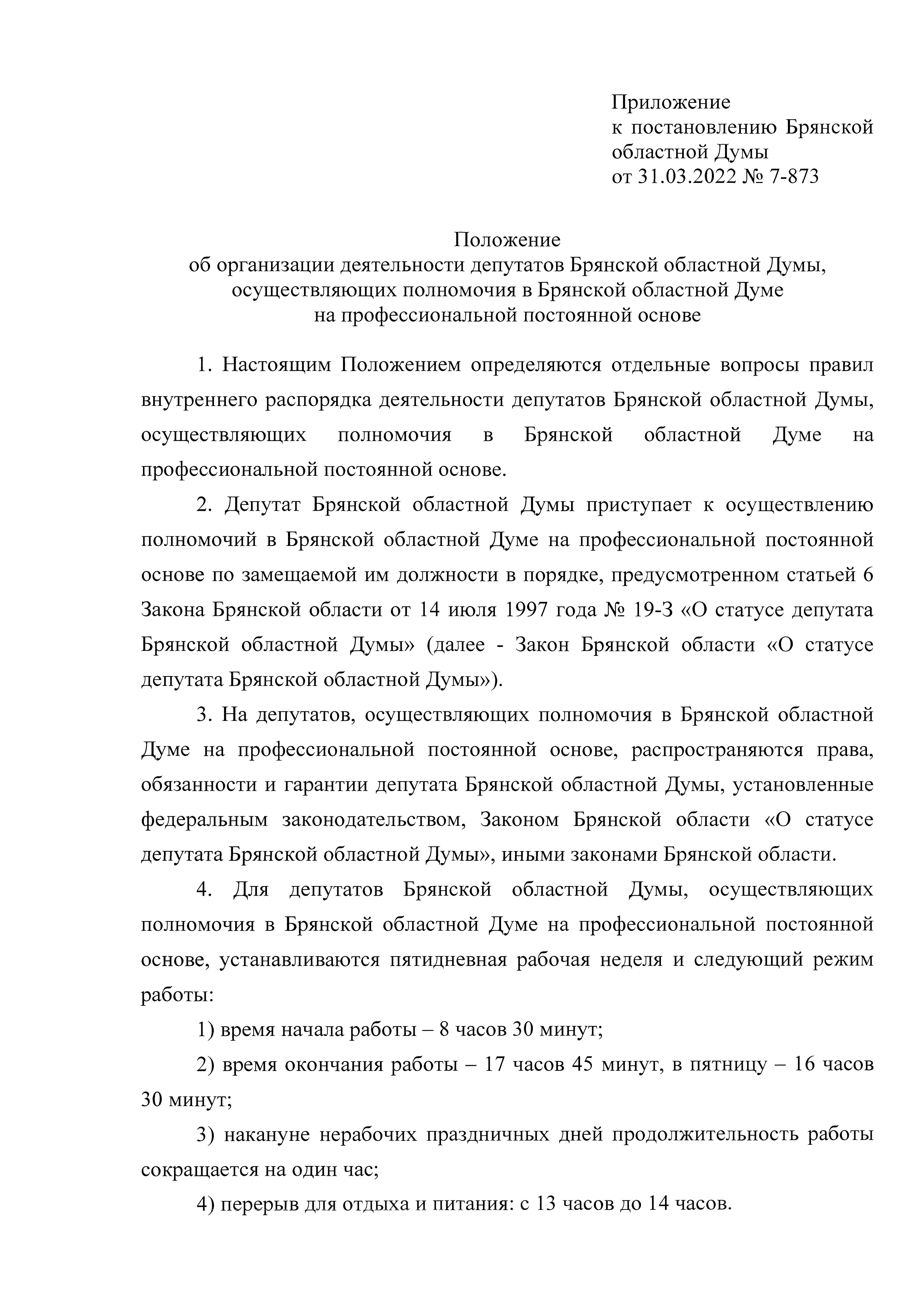 Постановление Брянской областной Думы от 31.03.2022 № 7-873