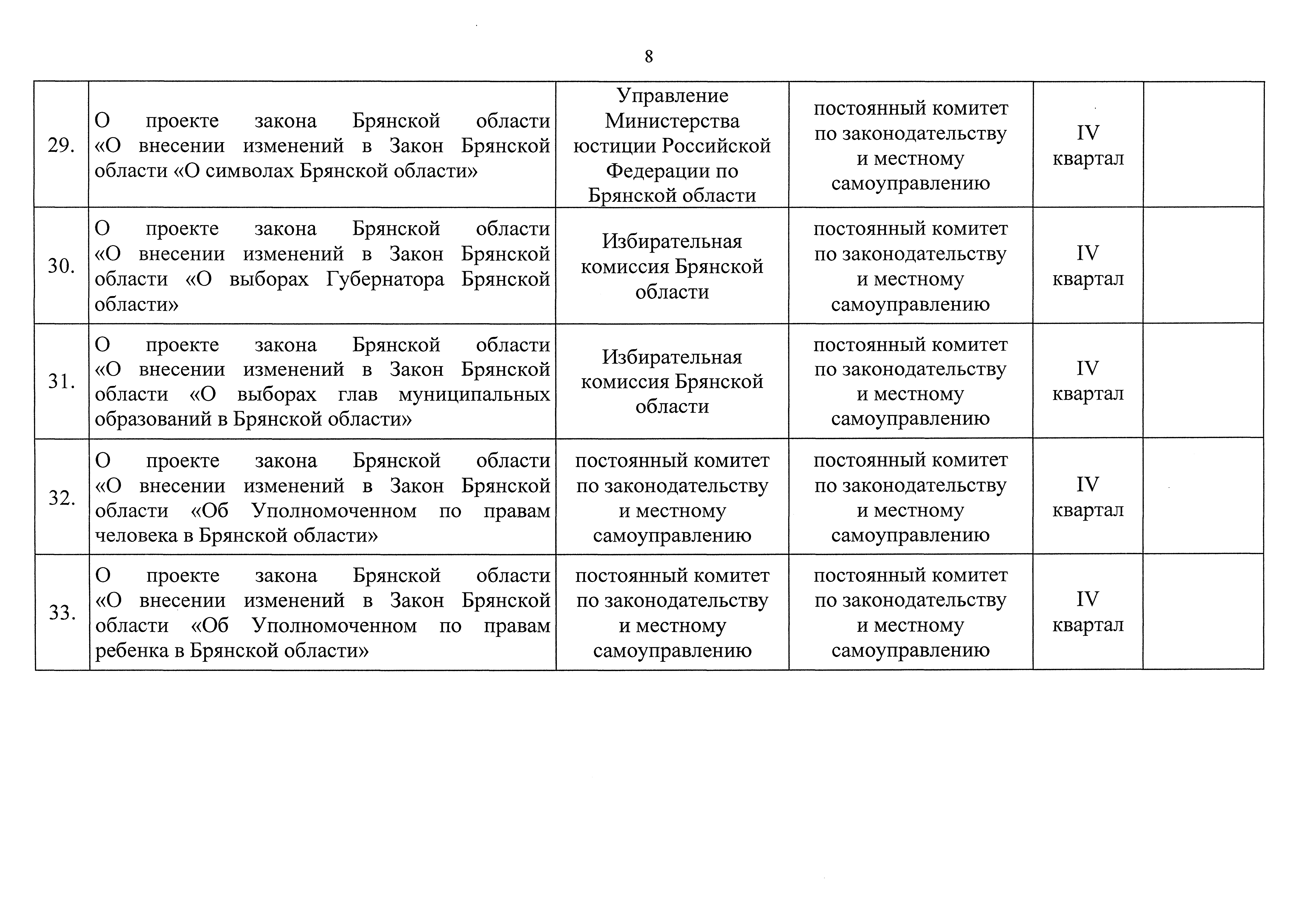 "О плане законотворческой деятельности Брянской областной Думы на второе полугодие 2022 года"