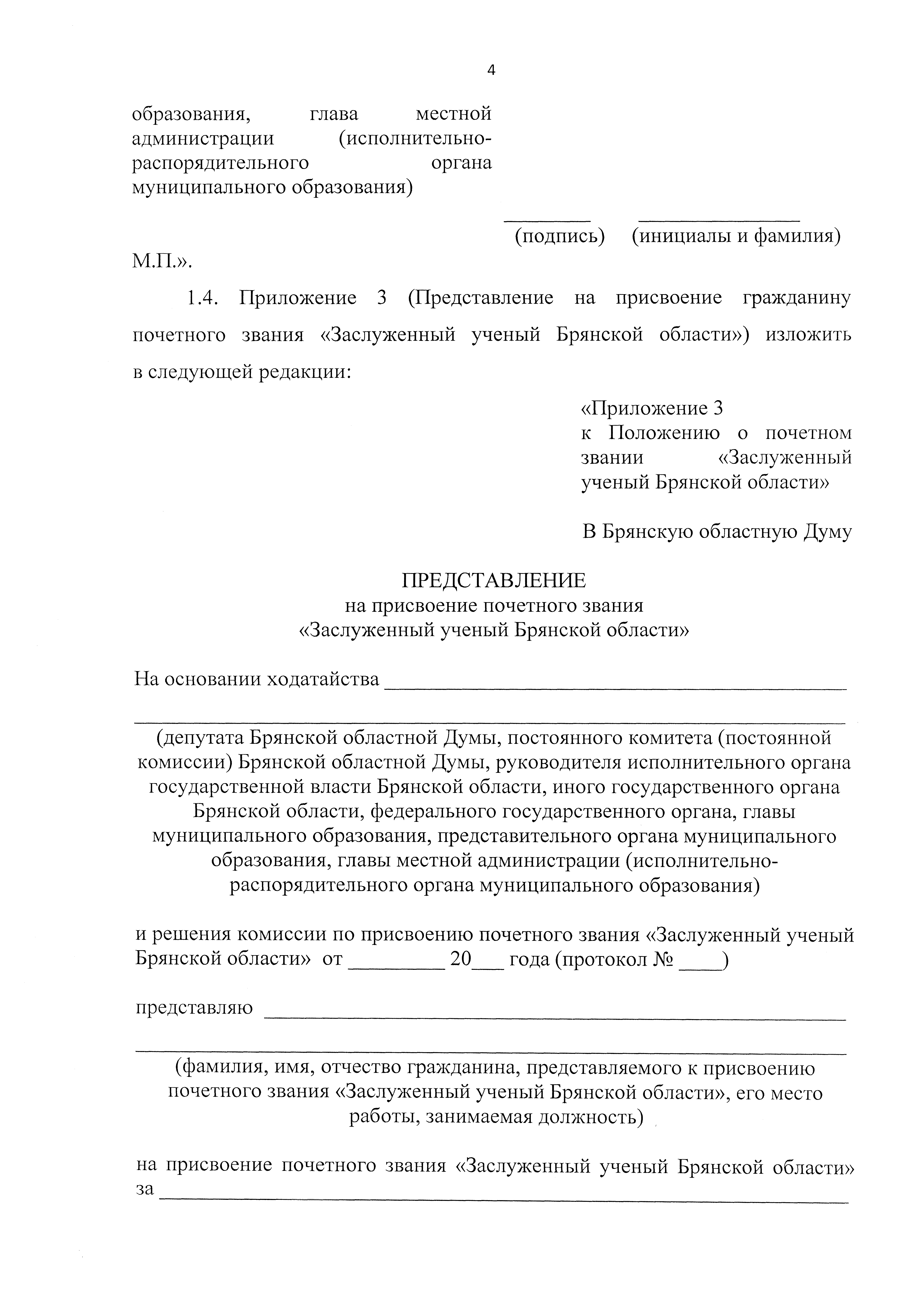 "О внесении изменений в Положение о почетном звании "Заслуженный ученый Брянской области"