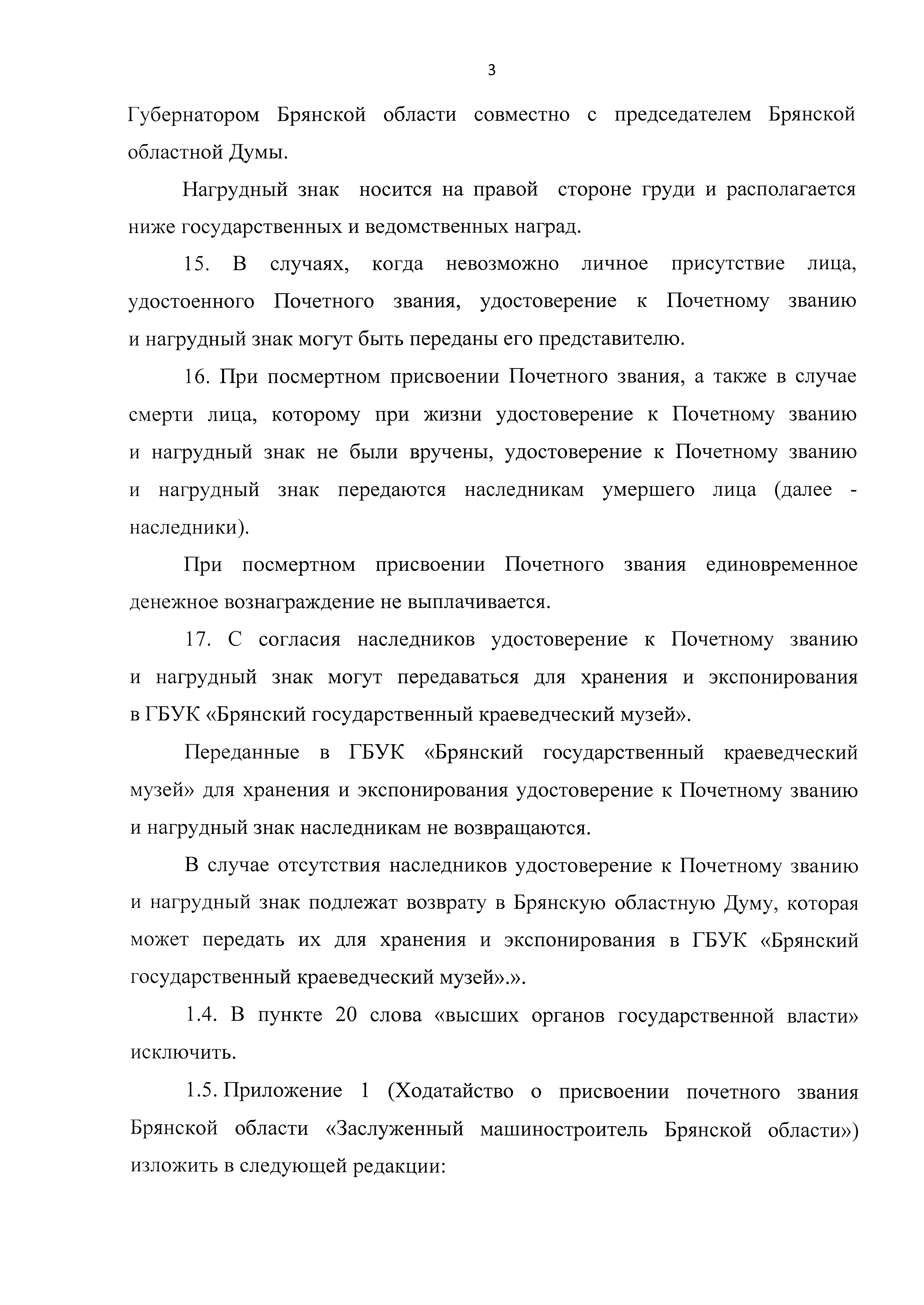 "О внесении изменений в постановление Брянской областной Думы от 25.05.2021 № 7-597 "Об учреждении почетного звания Брянской области "Заслуженный машиностроитель Брянской области"