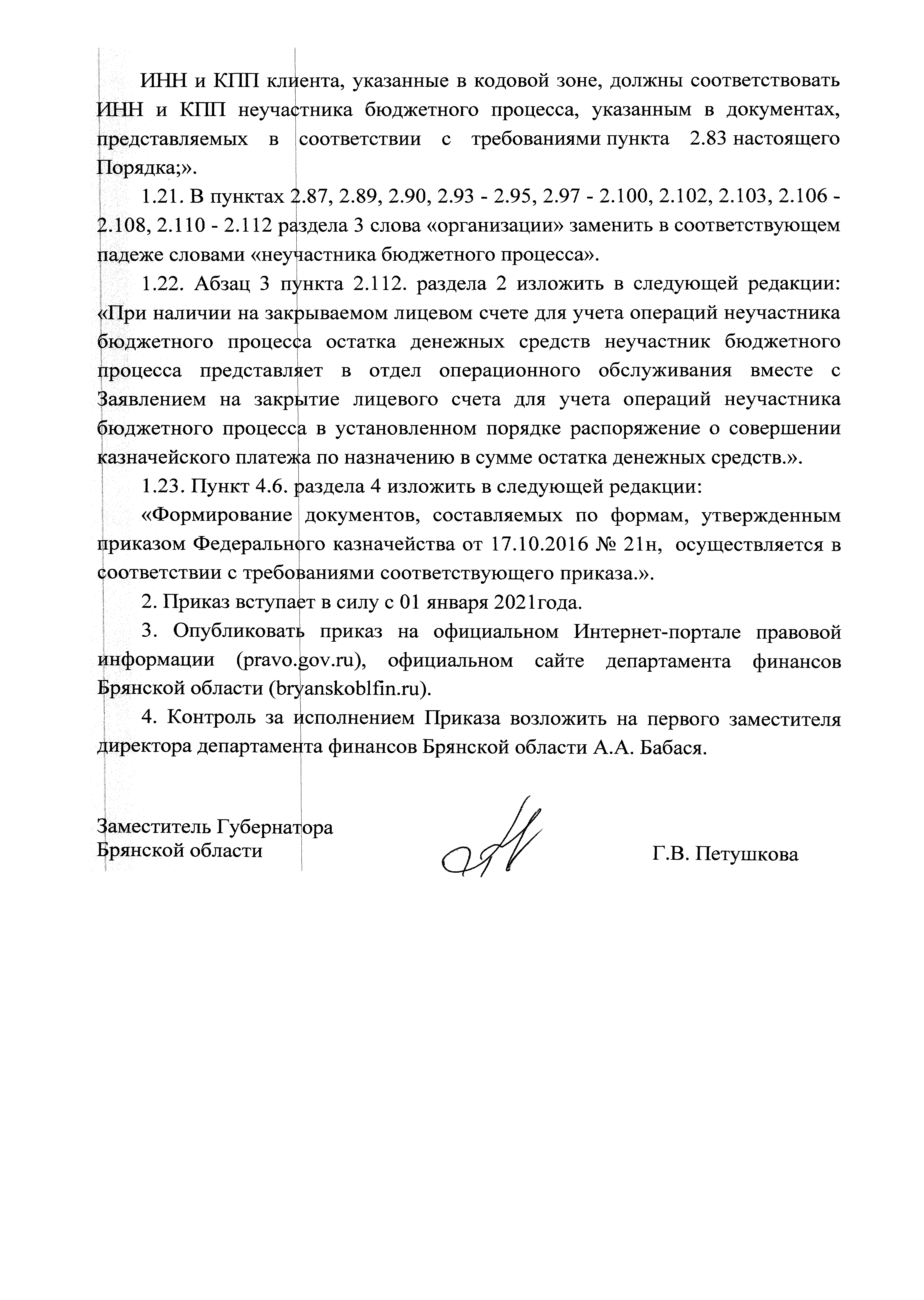 Приказ Департамента финансов Брянской области от 30.11.2020 № 220