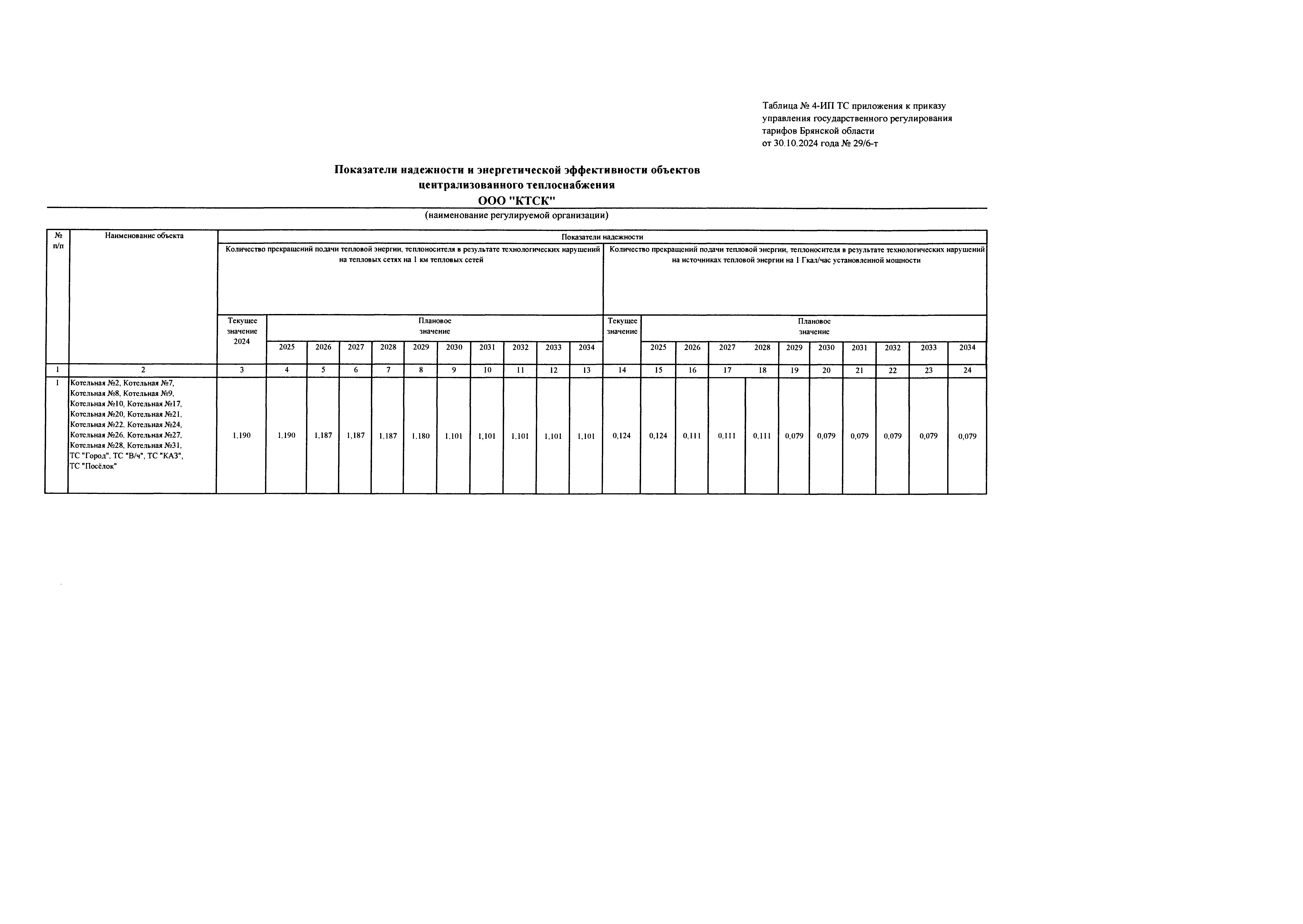 Приказ Управления государственного регулирования тарифов Брянской области от 30.10.2024 № 29/6-т