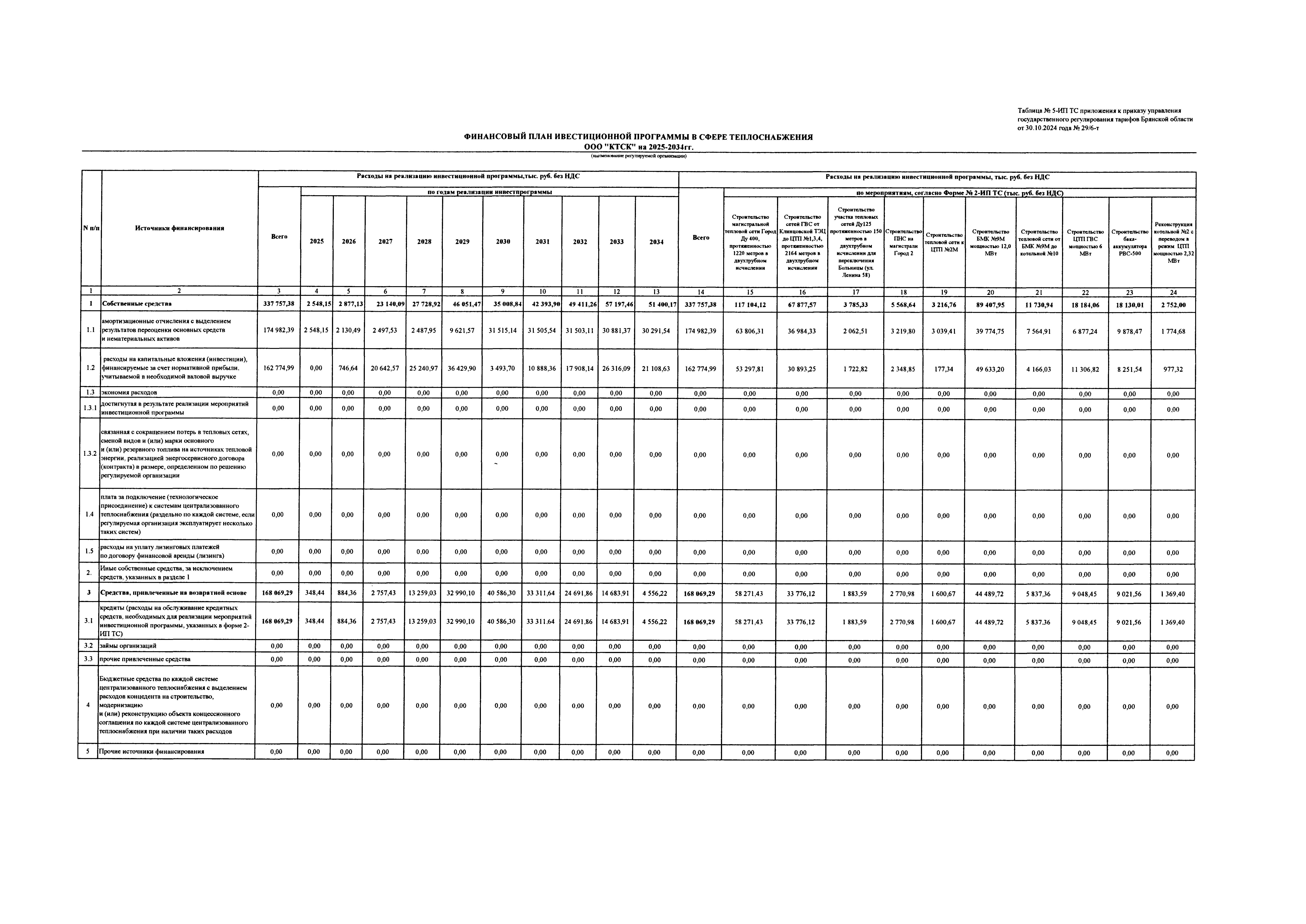"Об утверждении инвестиционной программы ООО "КТСК" в сфере теплоснабжения городского округа "город Клинцы Брянской области" на период 2025 — 2034 годы"