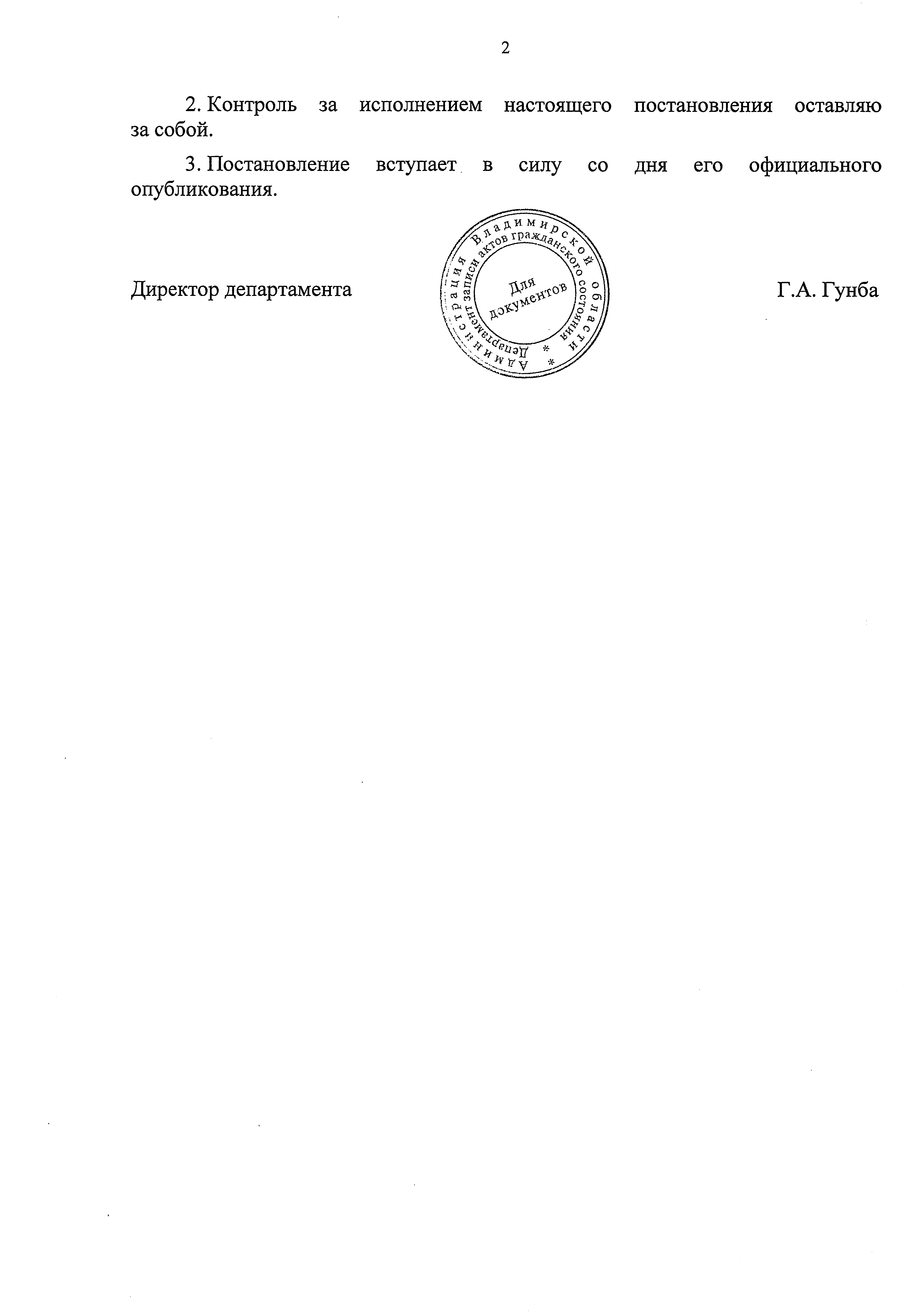 Постановление Департамента ЗАГС Владимирской области от 10.06.2019 № 3