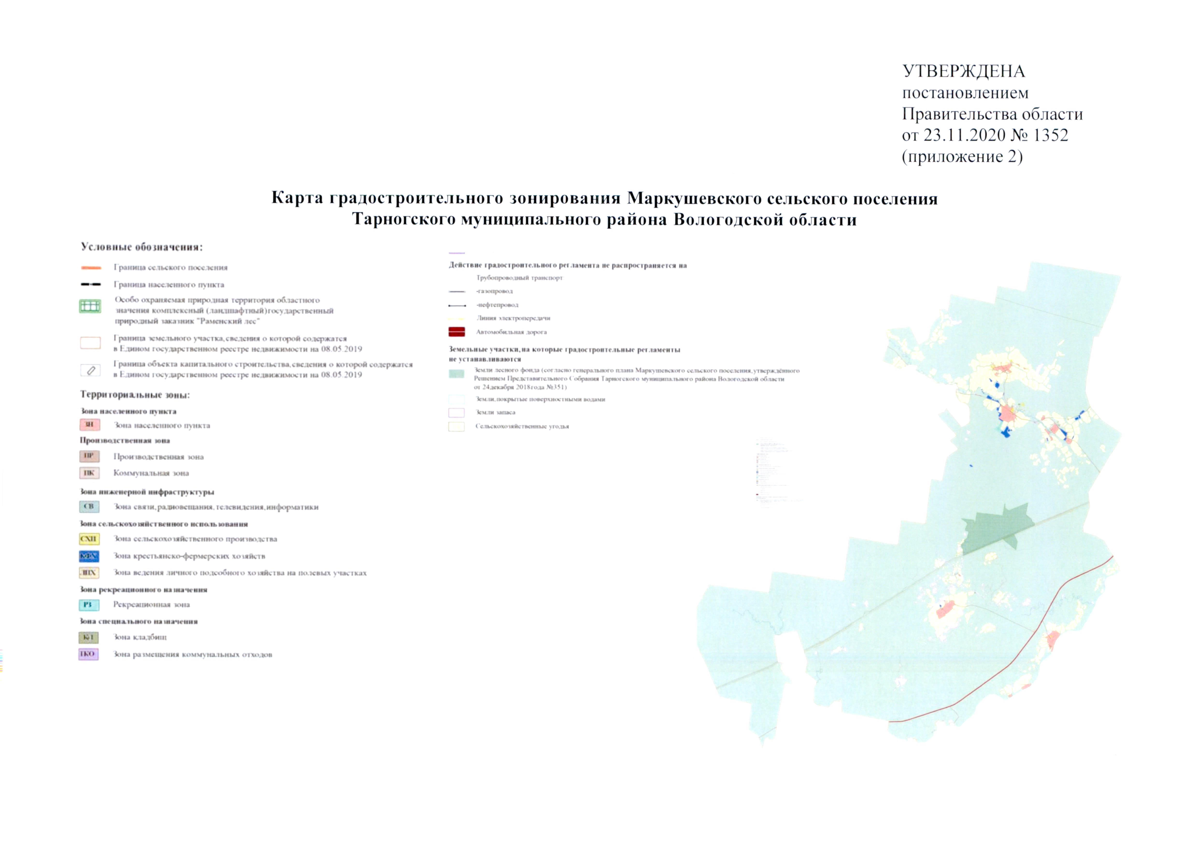 Постановление Правительства Вологодской области от 23.11.2020 №1352 "Об утверждении правил землепользования и застройки Маркушевского сельского поселения Тарногского муниципального района Вологодской области"