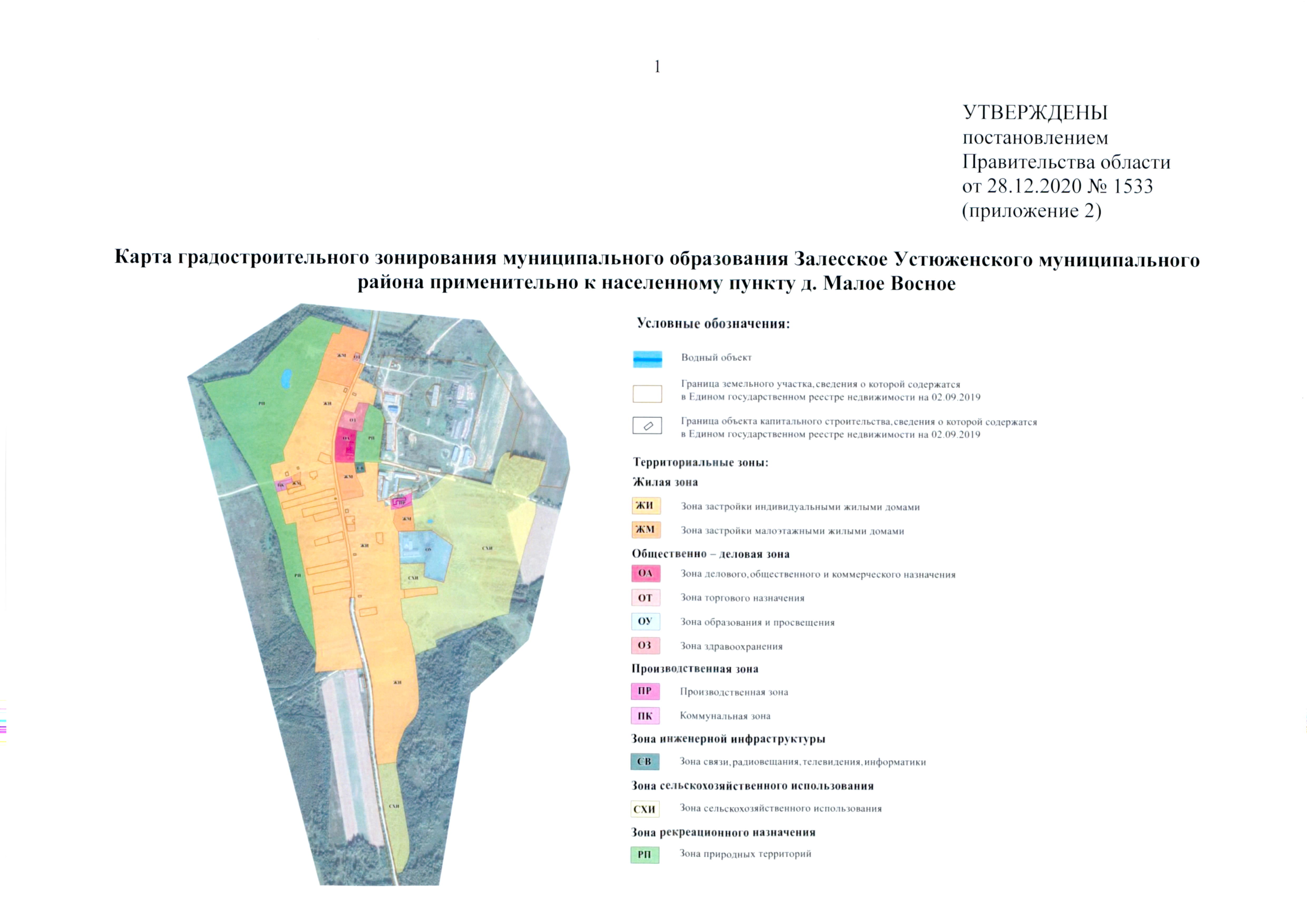 Постановление Правительства Вологодской области от 28.12.2020 №1533 "Об утверждении правил землепользования и застройки муниципального образования Залесское Устюженского муниципального района Вологодской области"