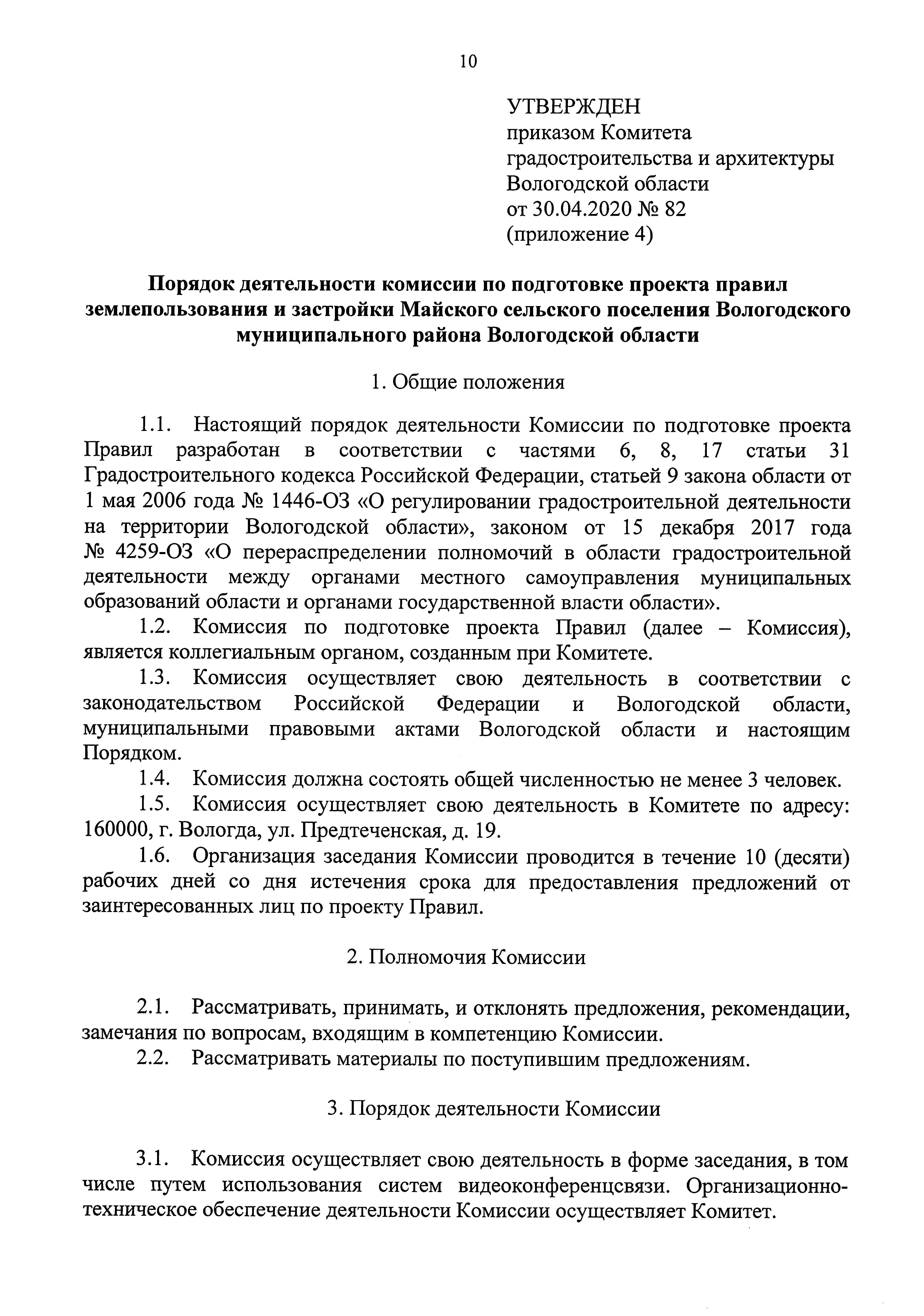 Приказ Комитета градостроительства и архитектуры Вологодской области от 30.04.2020 № 82