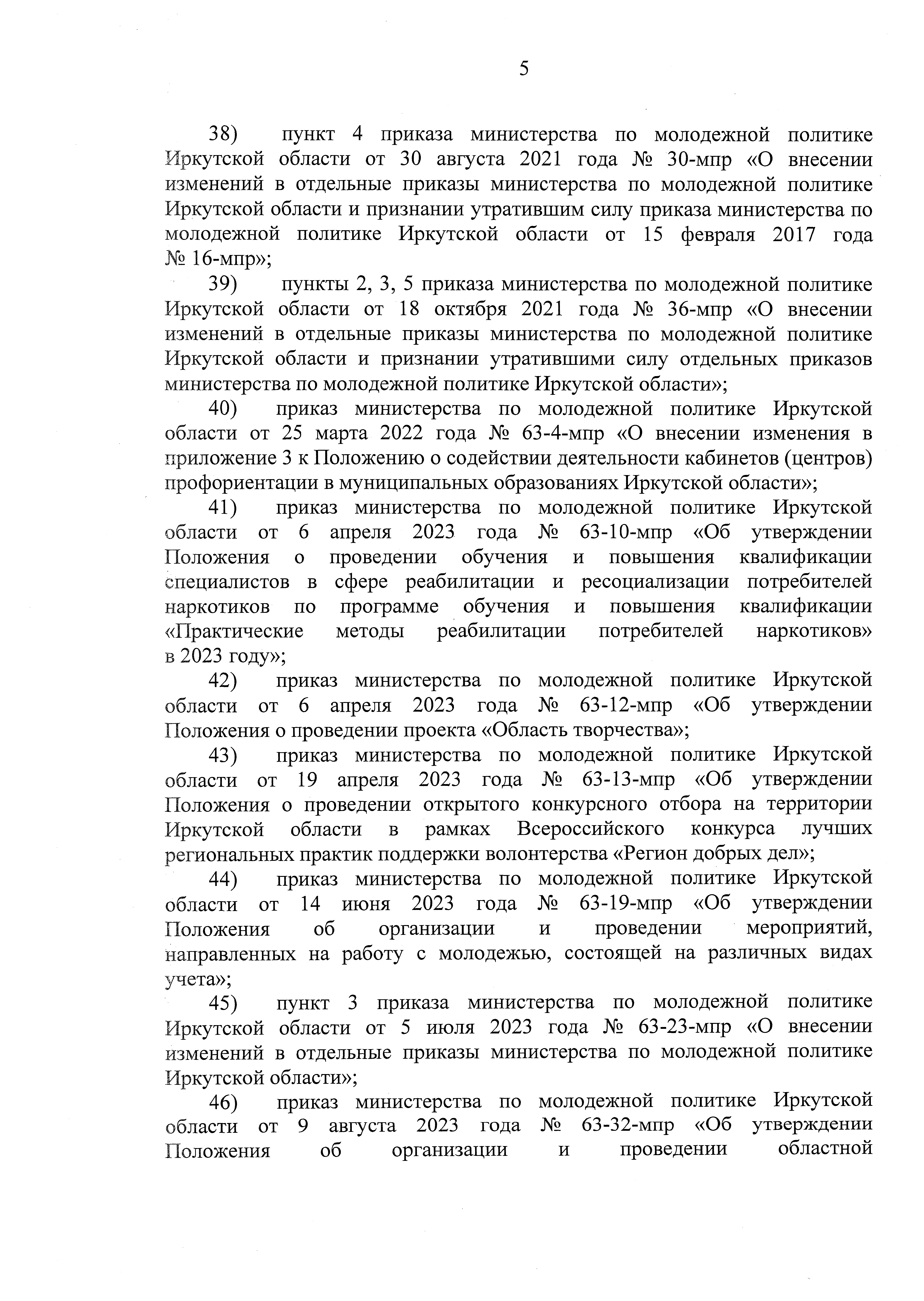 "О признании утратившими силу отдельных приказов министерства по молодежной политике Иркутской области"