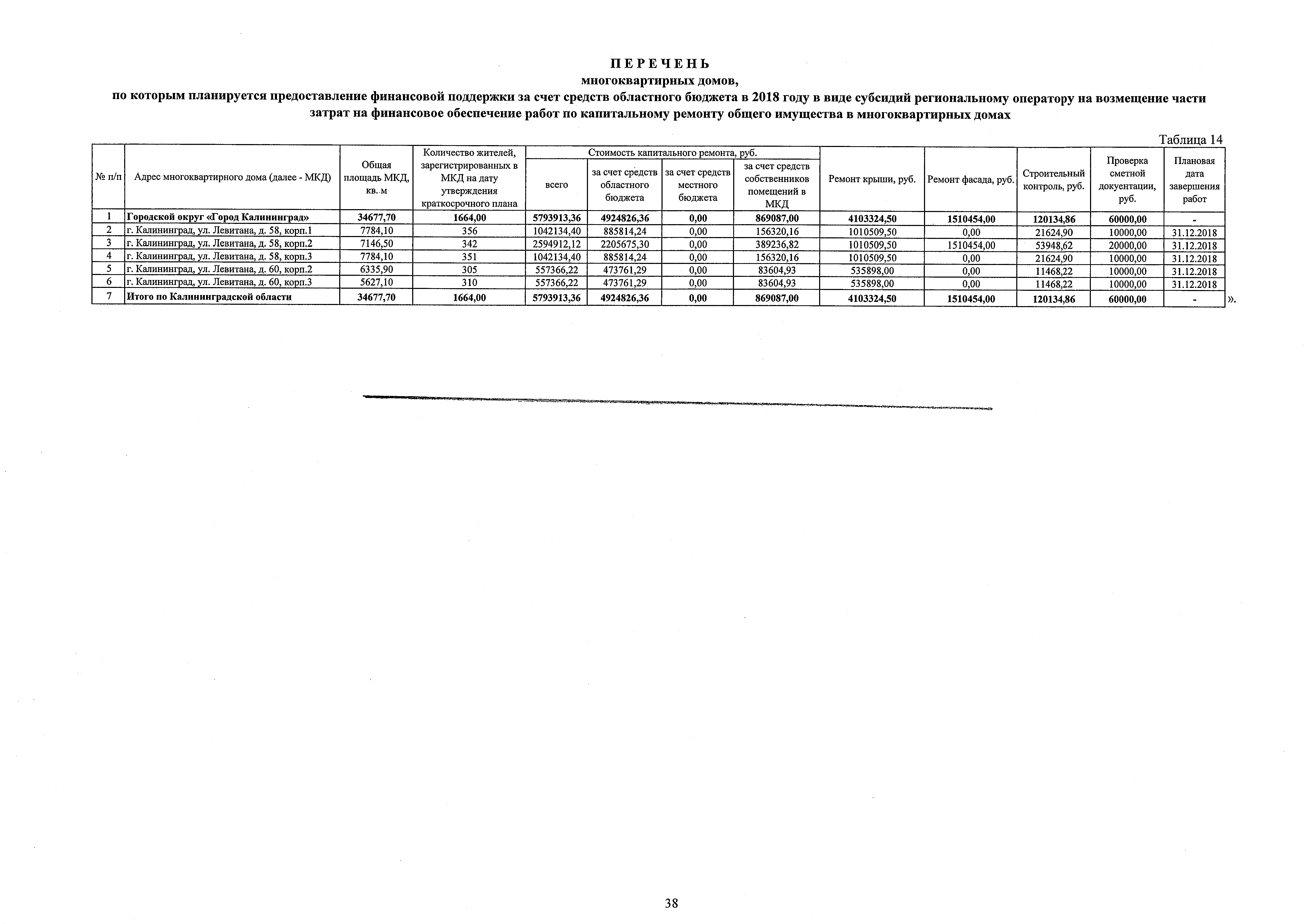"О внесении изменения в краткосрочный план реализации на 2017-2019 годы региональной программы капитального ремонта общего имущества в многоквартирных домах, расположенных на территории Калининградской области, на 2015-2044 годы"