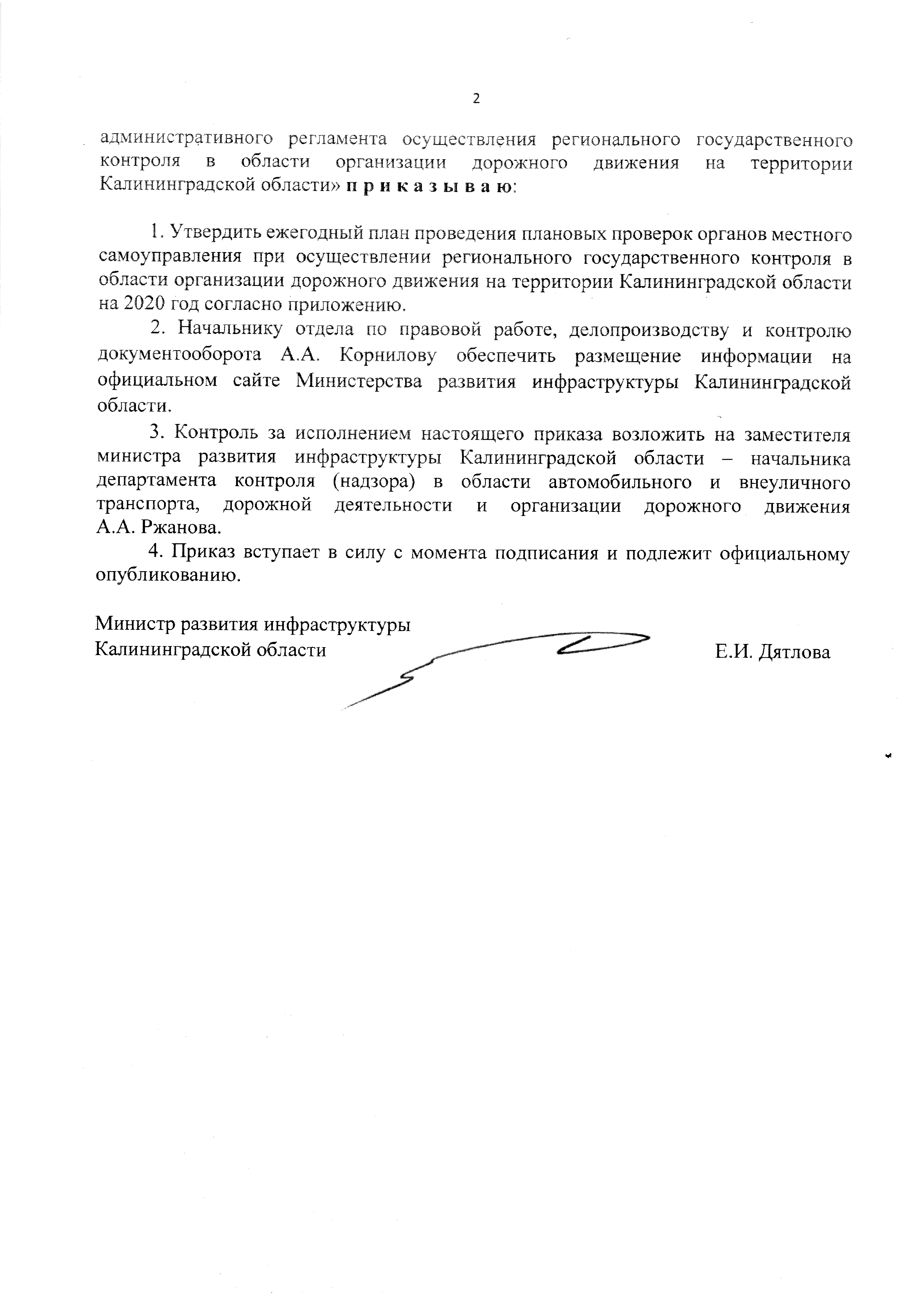 "Об утверждении ежегодного плана проведения плановых проверок органов местного самоуправления при осуществлении регионального государственного контроля в области организации дорожного движения на территории Калининградской области на 2020 год"