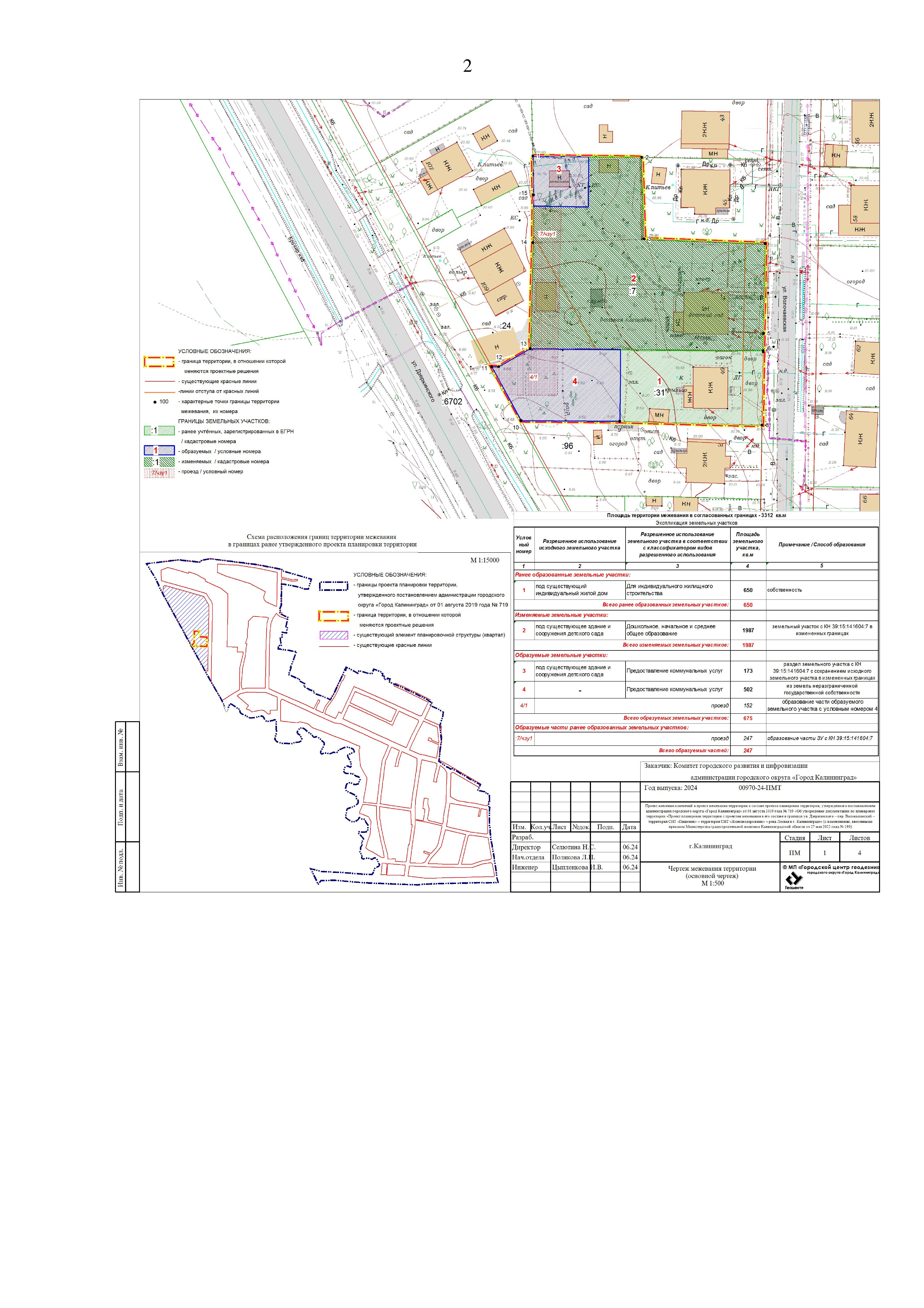 "Об утверждении проекта внесения изменений в проект межевания территории в составе проекта планировки территории, утвержденного постановлением администрации городского округа "Город Калининград" от 01 августа 2019 года № 719 "Об утверждении документации по планировке территории "Проект планировки территории с проектом межевания в его составе в границах ул. Дзержинского – пер. Волоколамский – территория СНТ "Пищевик" – территория СНТ "Железнодорожник" – река Лесная в г. Калининграде"