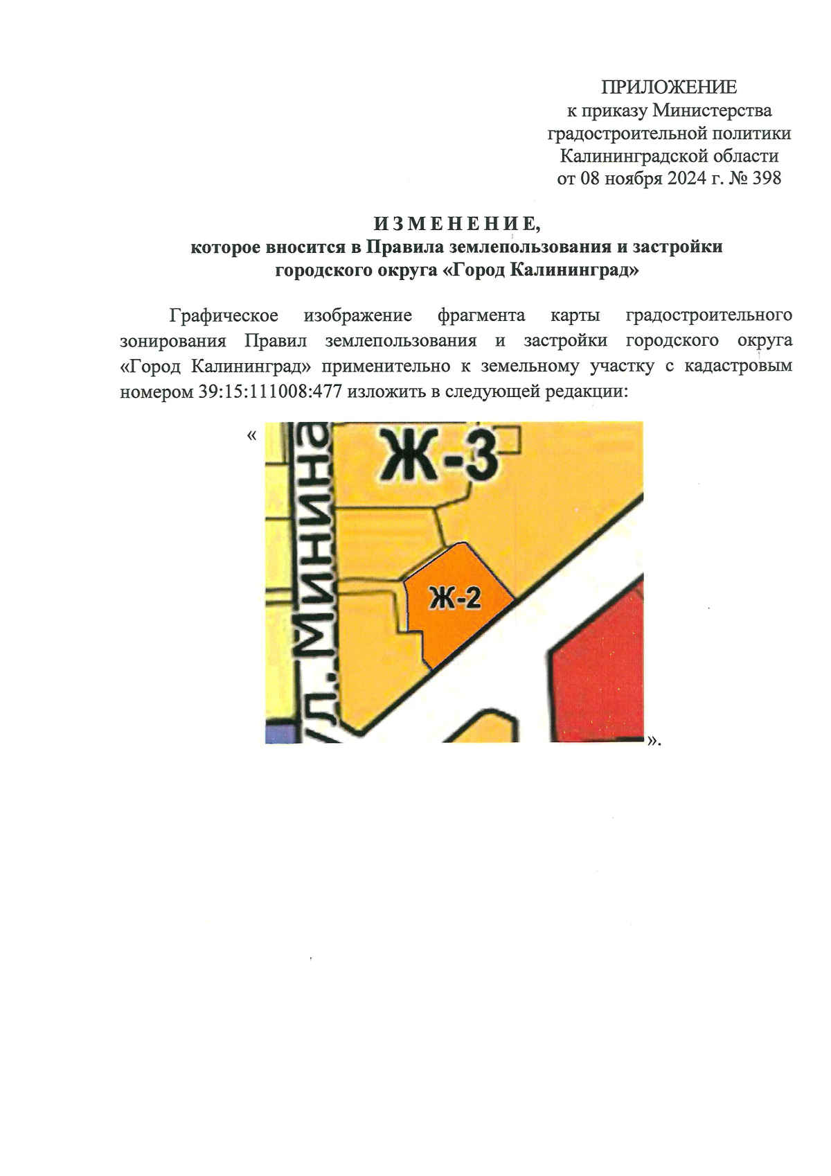 Приказ Министерства градостроительной политики Калининградской области от 08.11.2024 № 398