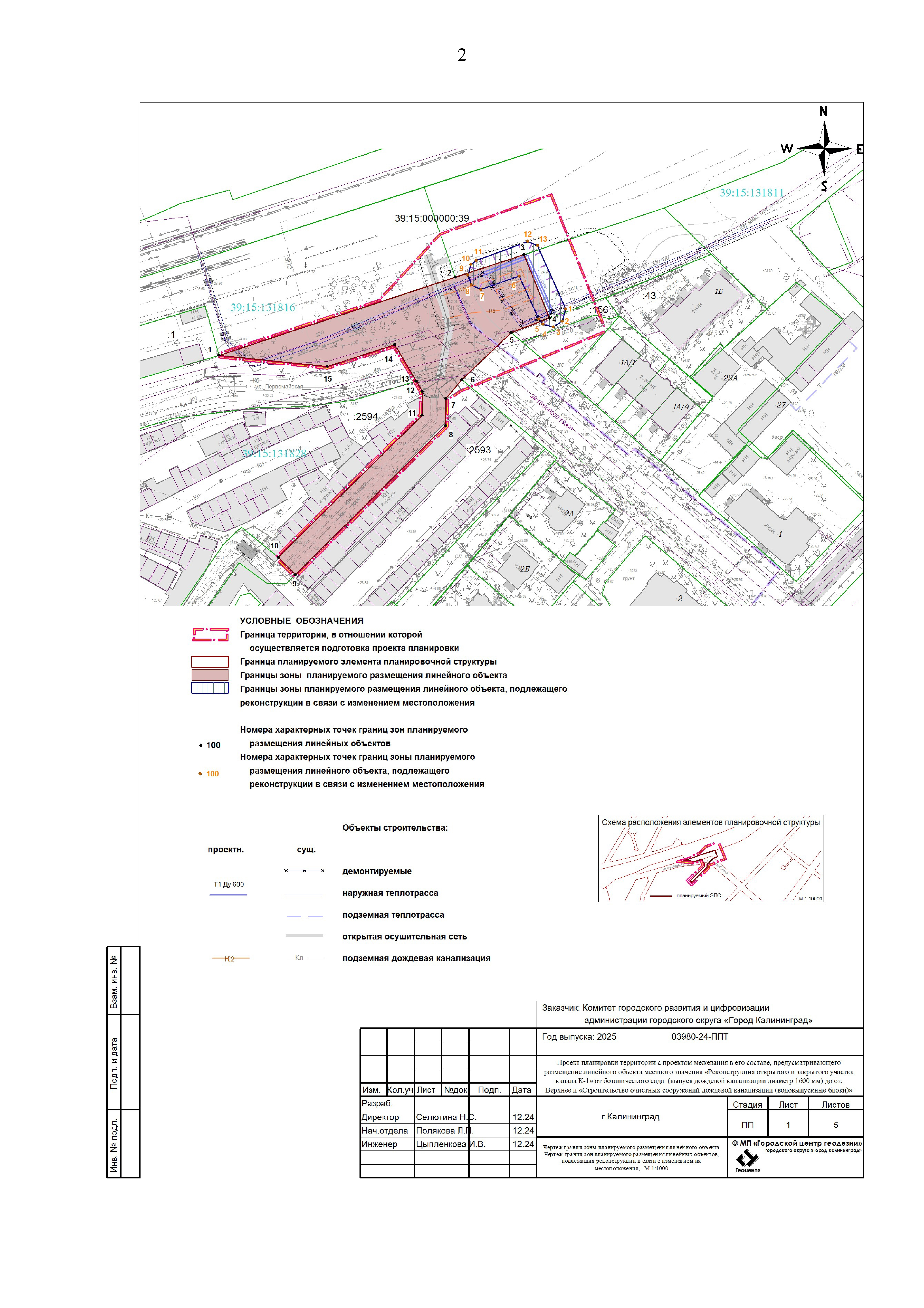 "Об утверждении проекта планировки территории с проектом межевания в его составе, предусматривающего размещение линейного объекта местного значения "Реконструкция открытого и закрытого участка канала К-1" от ботанического сада (выпуска дождевой канализации диаметр 1600 мм) до оз. Верхнее и "Строительство очистных сооружений дождевой канализации (водовыпускные блоки)"