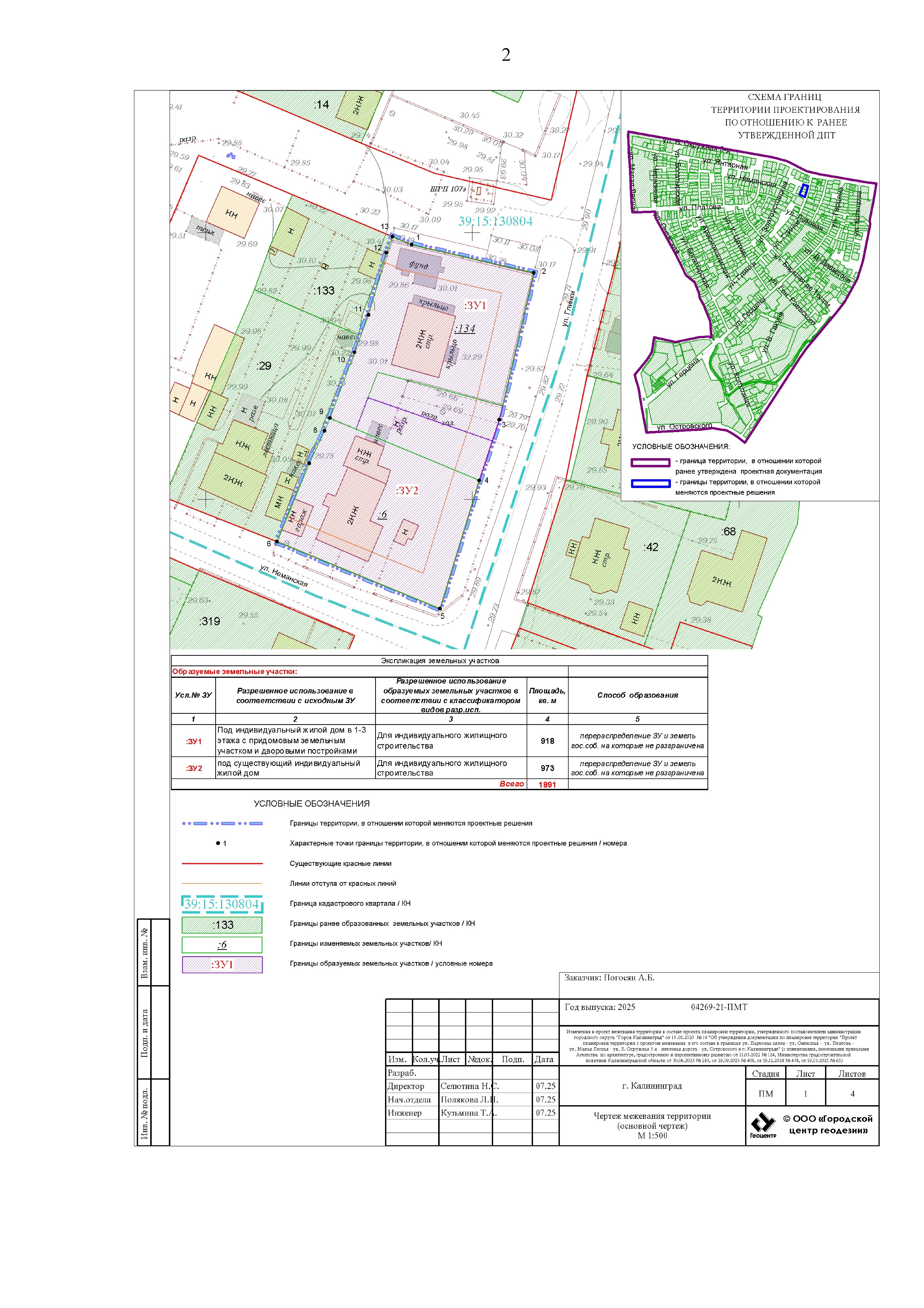 "Об утверждении изменений в проект межевания территории в составе проекта планировки территории, утвержденного постановлением администрации городского округа "город Калининград" от 13 января 2020 года № 14"