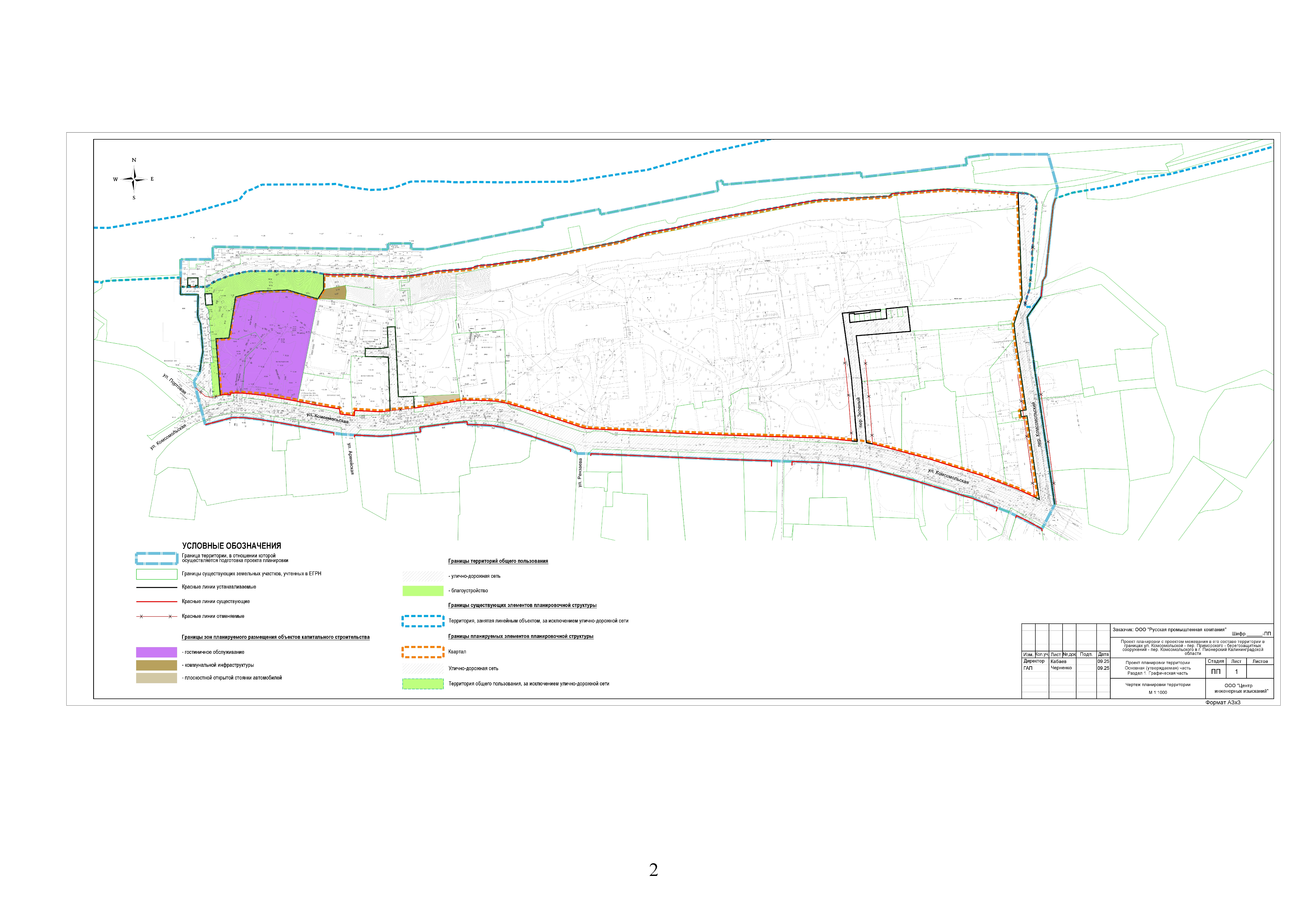 "Об утверждении проекта планировки территории с проектом межевания в его составе в границах ул. Комсомольская – пер. Приморского – берегозащитных сооружений – пер. Комсомольского в г. Пионерский Калининградской области"