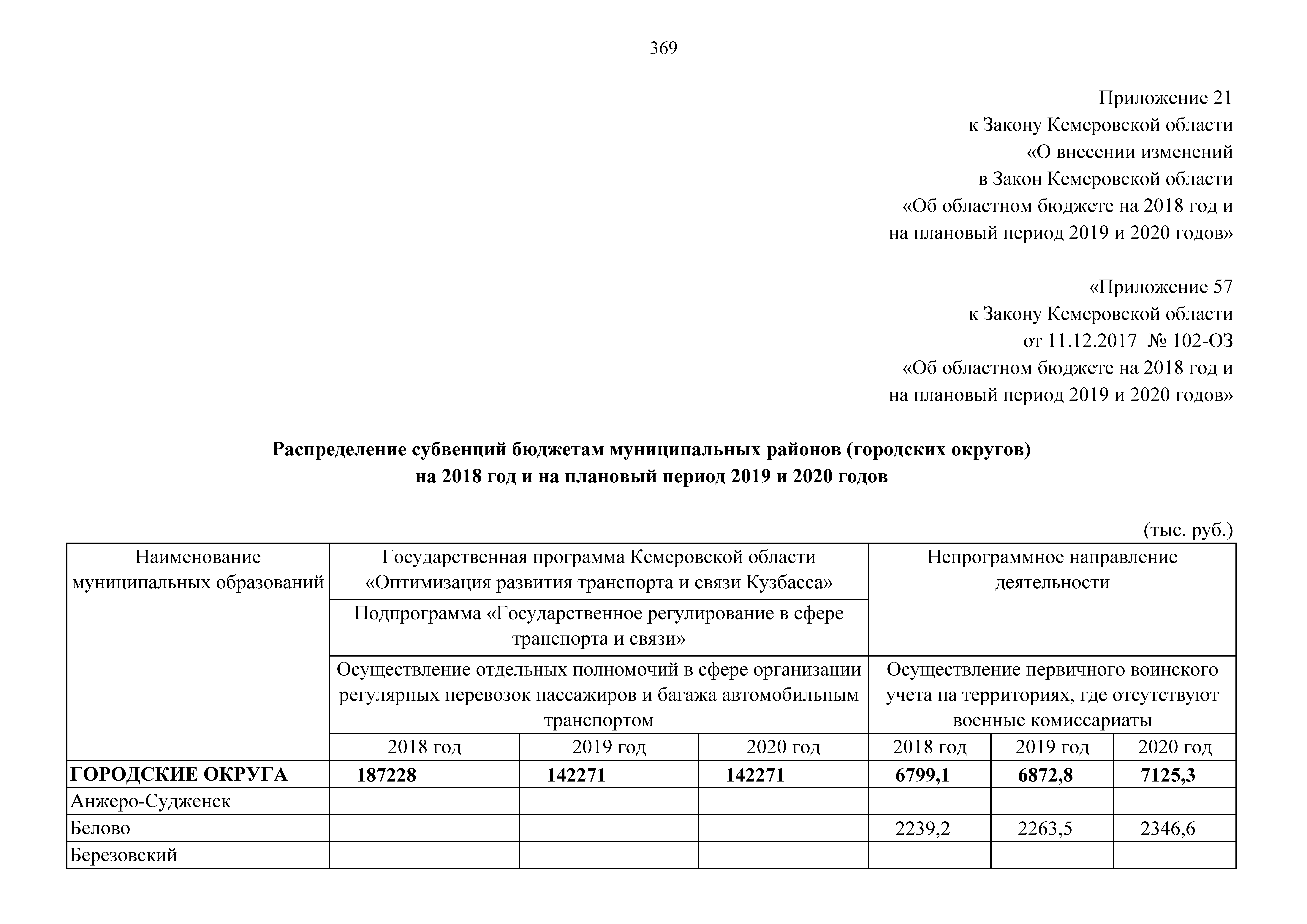 "О внесении изменений в Закон Кемеровской области "Об областном бюджете на 2018 год и на плановый период 2019 и 2020 годов"
